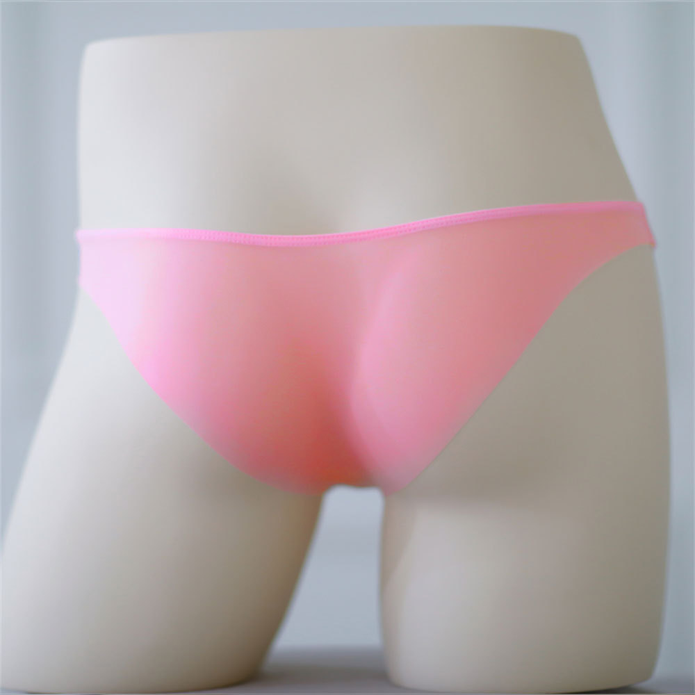 섹시한 투명 삼각 팬티 남성용 무봉제 속옷 남성용 아이스 실크 여름용 로우 웨이스트 편안한 누드 느낌 가볍고 얇음