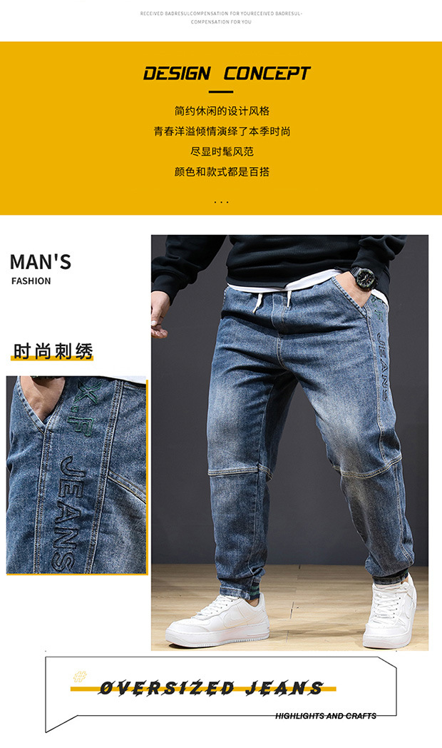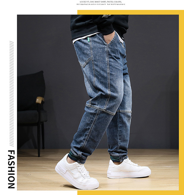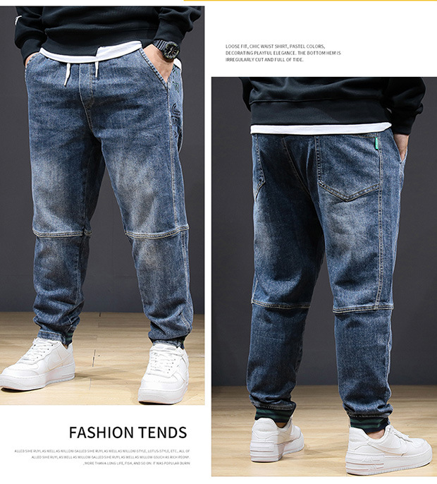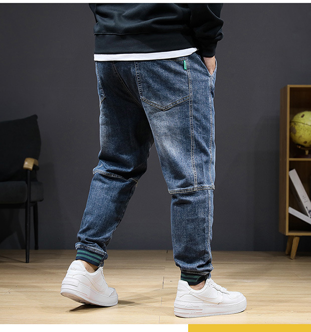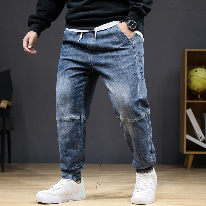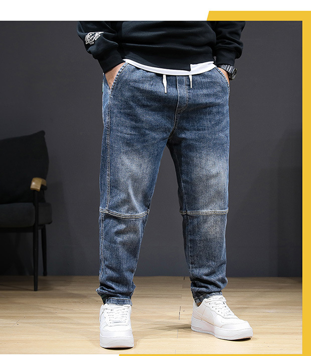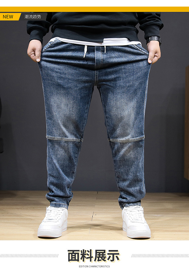 플러스 사이즈 남자 가을 스트레치 스키니 청바지 뚱뚱한 느슨한 올 매치 바지 신축성있는 허리 유행