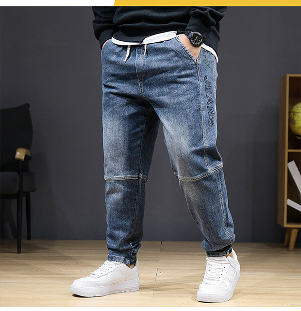 플러스 사이즈 남자 가을 스트레치 스키니 청바지 뚱뚱한 느슨한 올 매치 바지 신축성있는 허리 유행스토어 가기