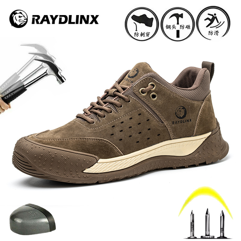 공장 직접 노동 보호 신발 돼지 가죽 스틸 헤드 스매싱 방지 펑크 방지 통기성 탈취제 미끄럼 방지 고무 밑창 작업 신발스토어 가기