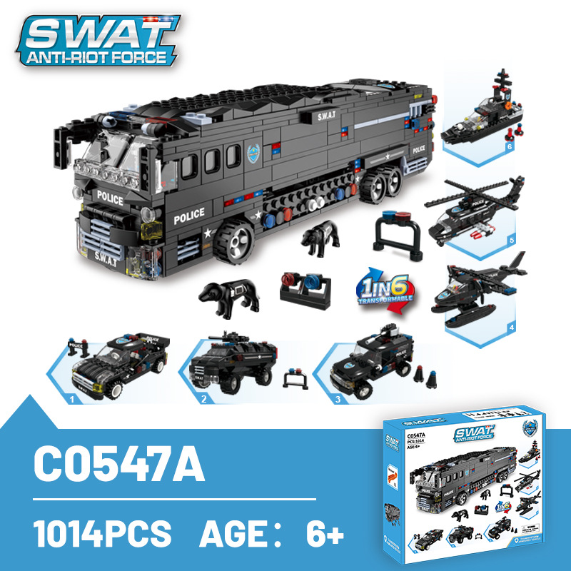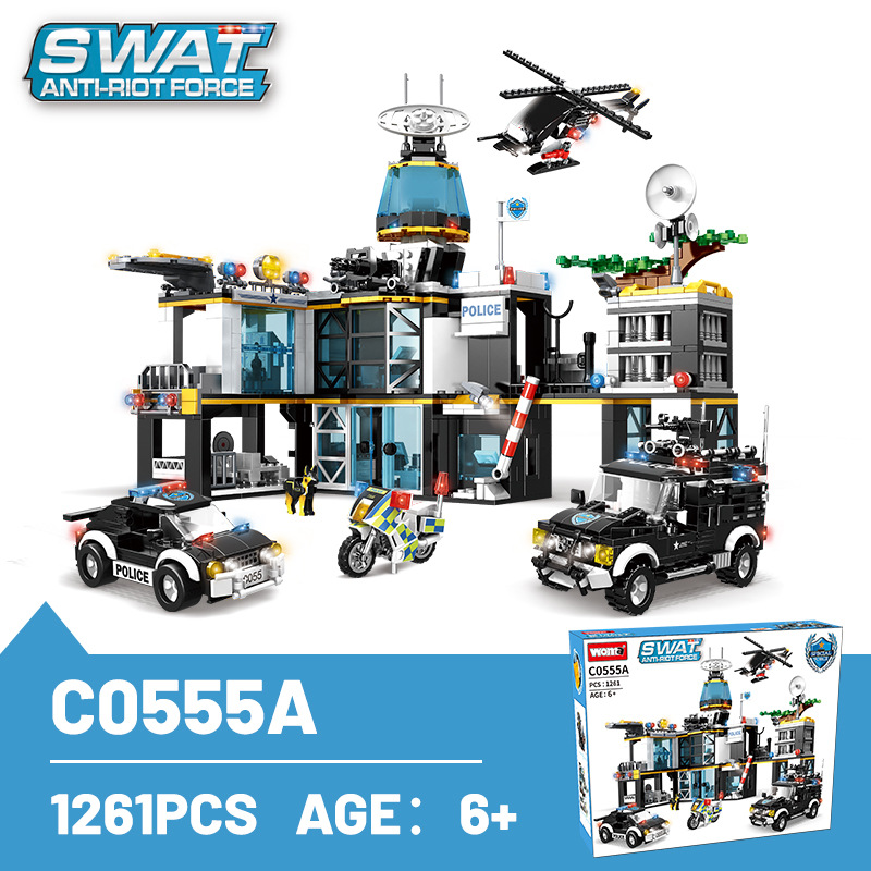 Woma 빌딩 블록 세대의 크로스 보더 어린이 특수 경찰 장난감 소년 패치 워크 경찰차 군용 항공기 모델