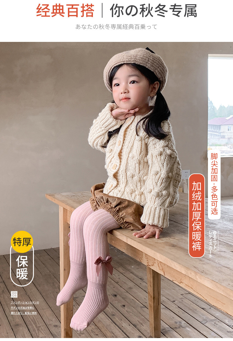 여자 팬티 스타킹 기모 두꺼운 겨울 큰 활 세로 스트립 어린이 아기 레깅스 아기의 팬티 스타킹 따뜻한