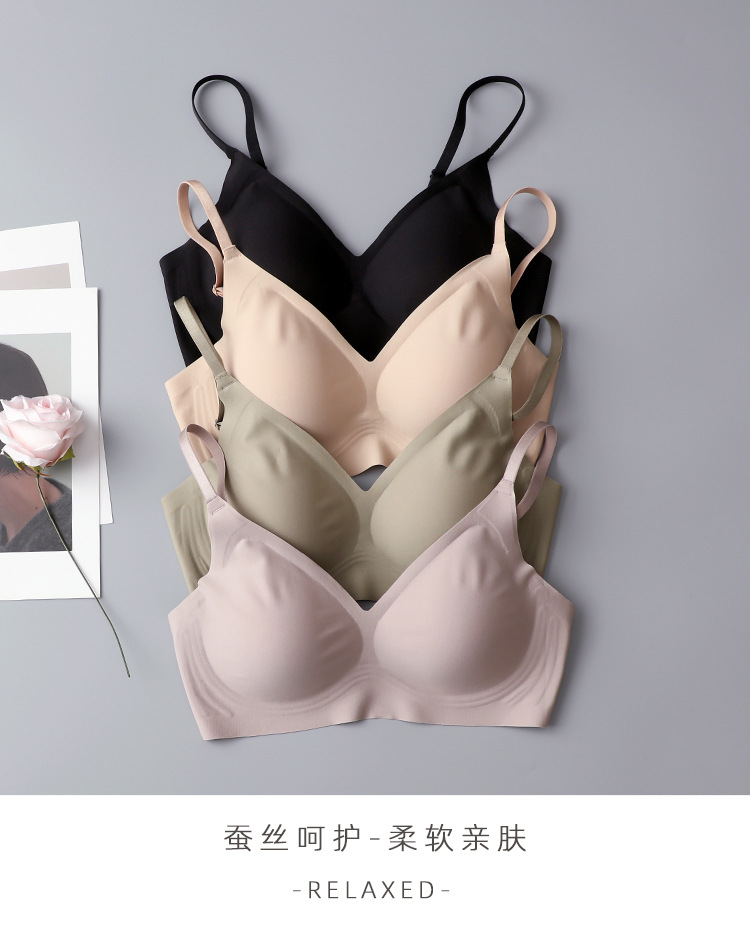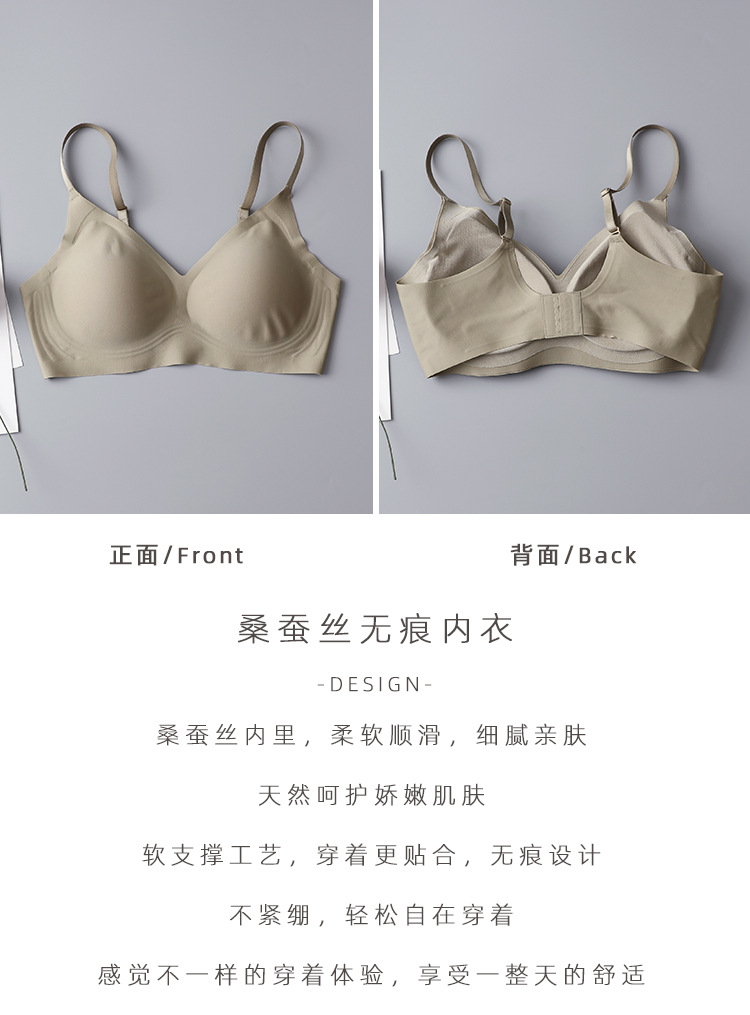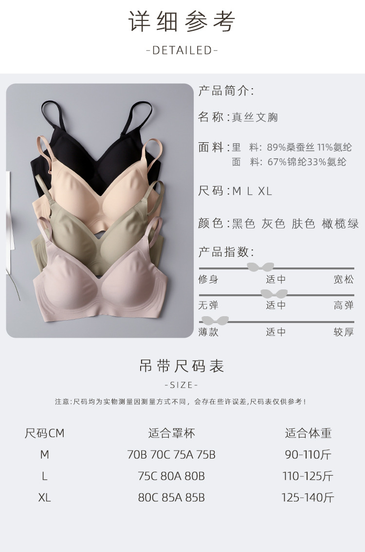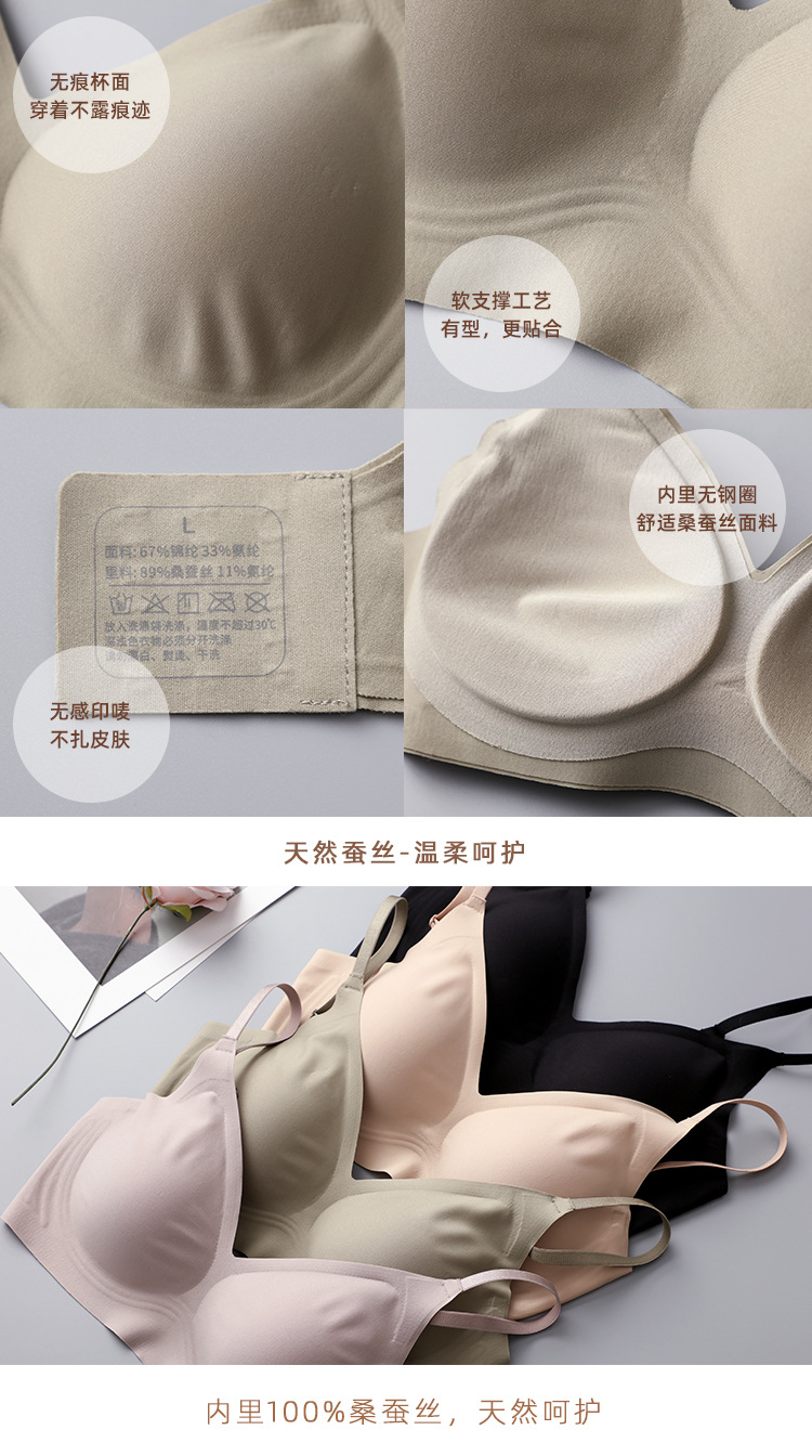 스틸 링 속옷 없이 실크 매끄러운 매끄러운 브래지어 소프트 서포트 상부 서포트 뽕나무 실크 편안한 피부 친화적 심플 통기성스토어 가기