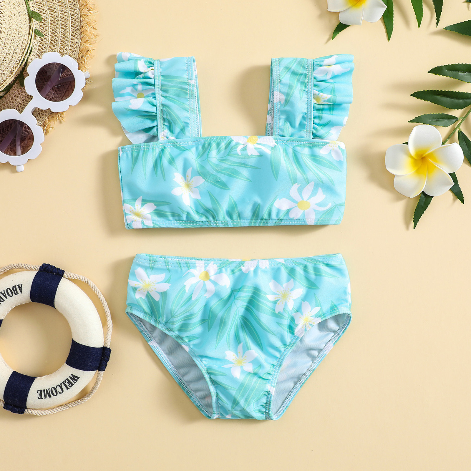 소녀들을 위한 꽃무늬 수영복, 분리형 비키니 세트, 부모-자녀용 고탄력 자외선 차단 수영복