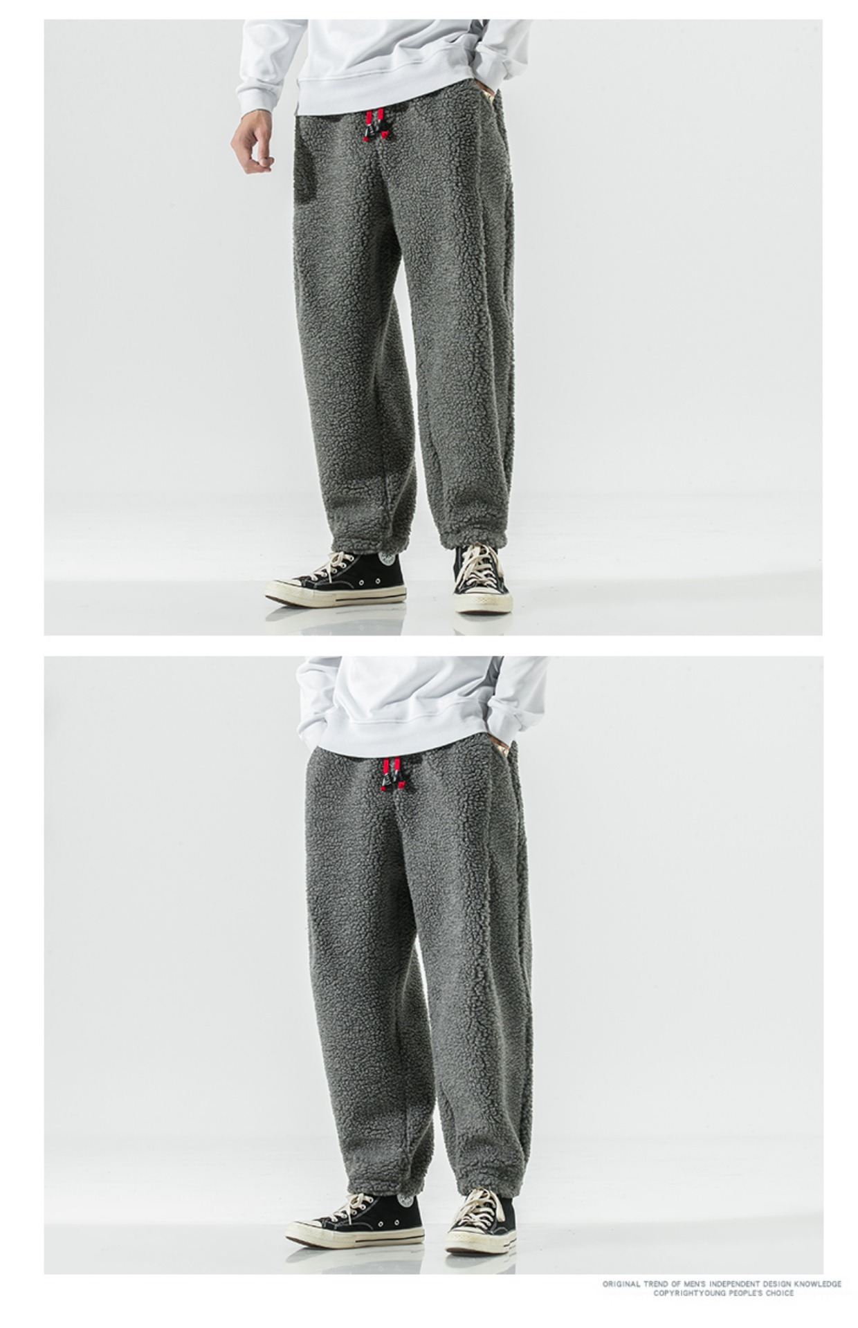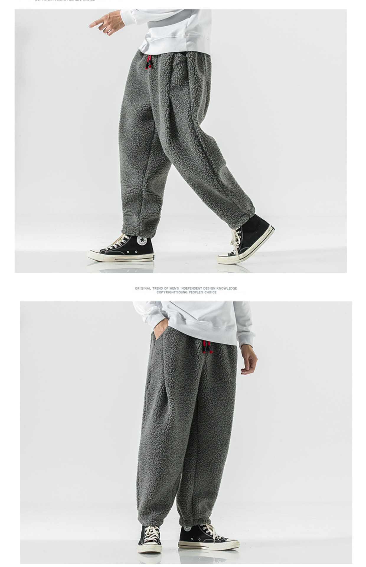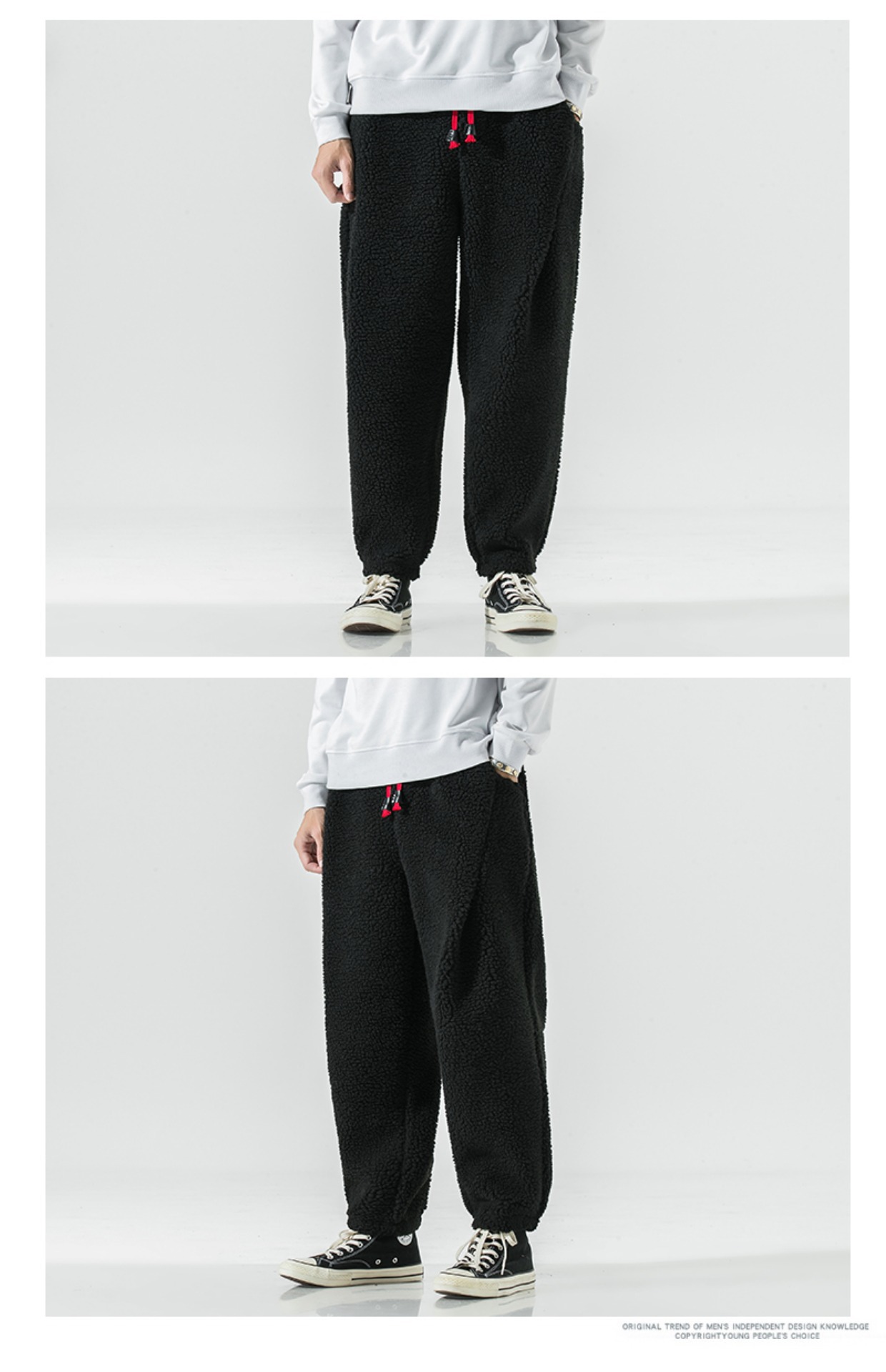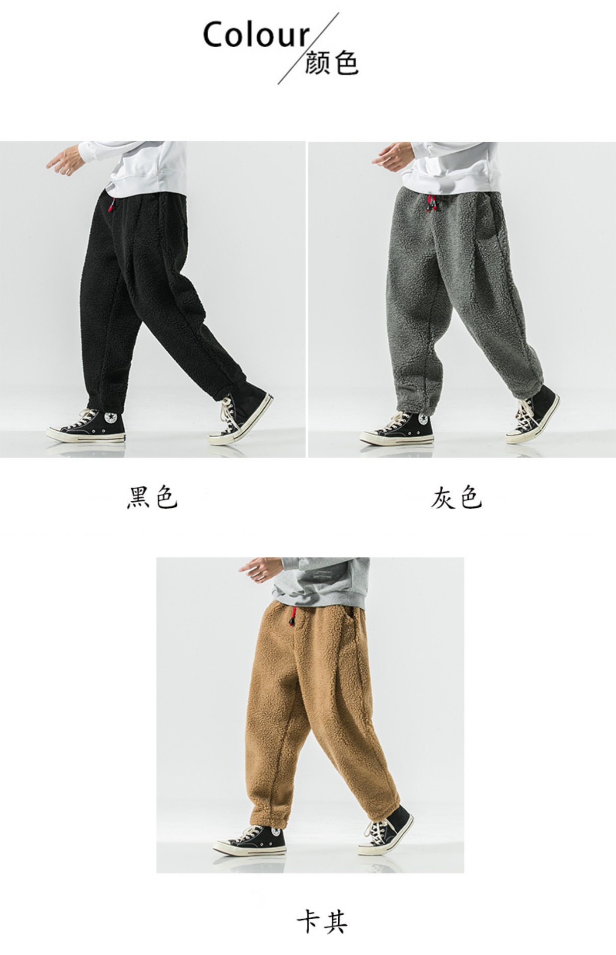 2023 겨울 두꺼운 남자의 캐주얼 중국 스타일 양고기 울 따뜻한 바지 일본 남자의 면 바지 플러스 사이즈 하렘 바지