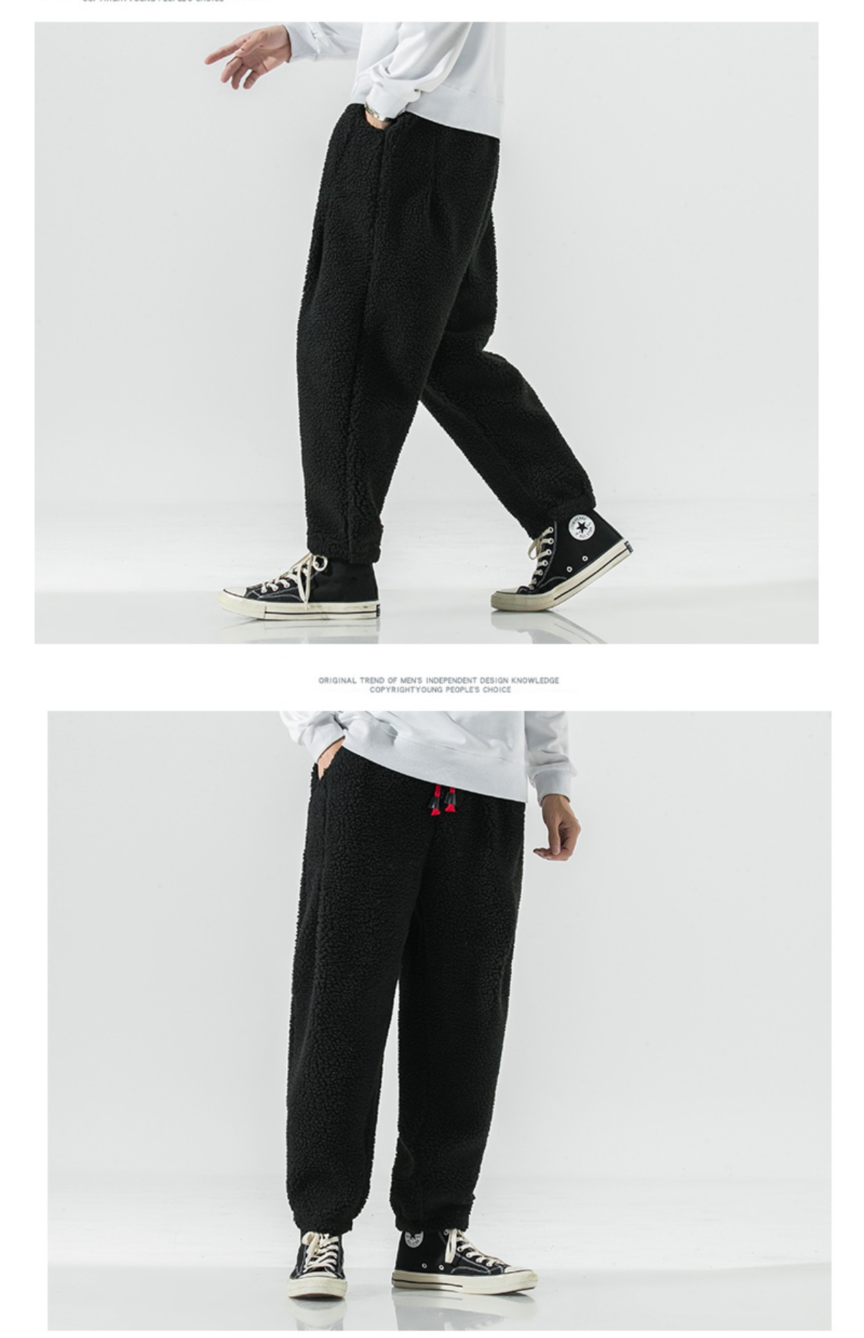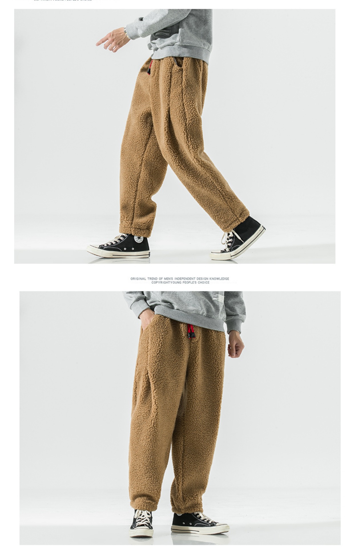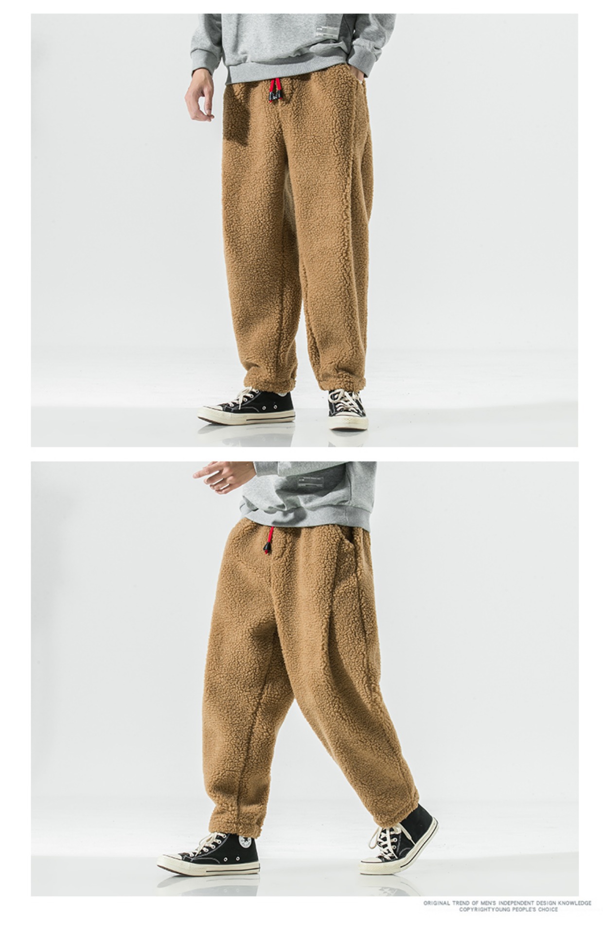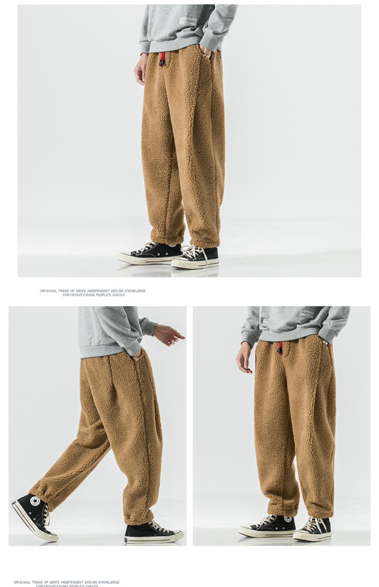 2023 겨울 두꺼운 남자의 캐주얼 중국 스타일 양고기 울 따뜻한 바지 일본 남자의 면 바지 플러스 사이즈 하렘 바지