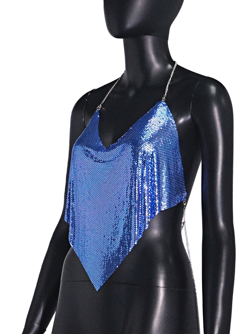 2023 여름 슬링 단색 슬림핏 등이없는 복고풍 짧은 파란색 유럽과 미국 작은 조끼 LBZ1646스토어 가기