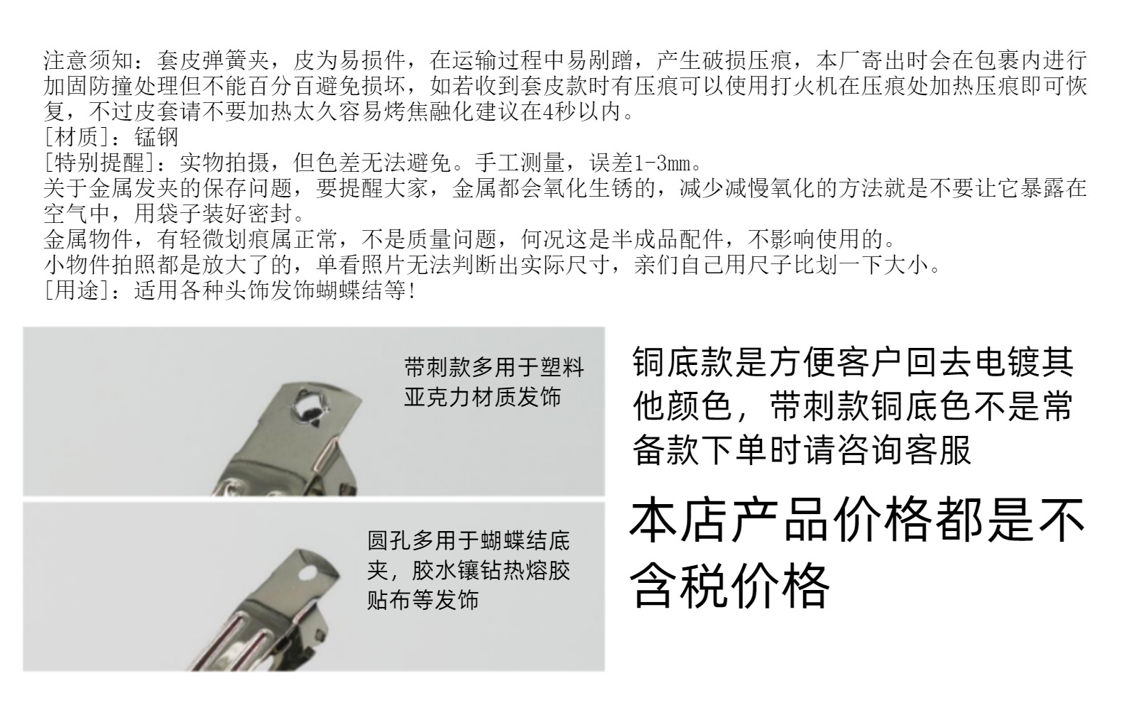 한국어 버전 10cm 3 피스 가죽 미끄럼 방지 스프링 클립 활 포니테일 클립 DIY 보석 액세서리 도매스토어 가기
