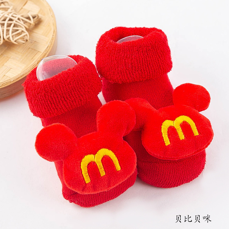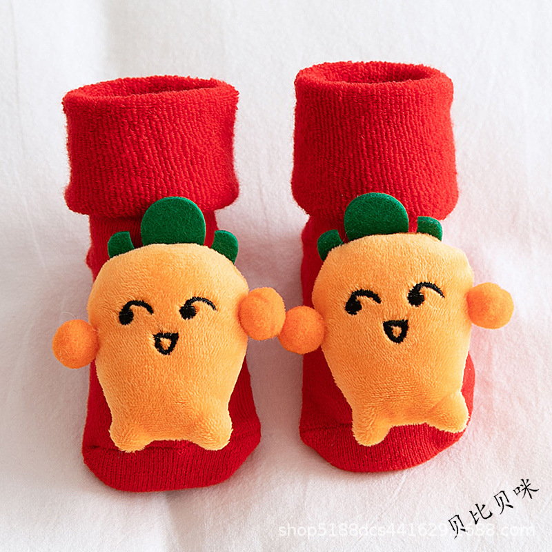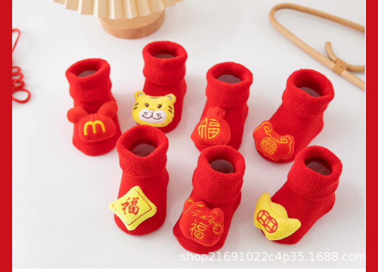아기의 새해 빨간 신발과 양말 어린이면 양말 가을 두꺼운 테리 신생아 미끄럼 방지 바닥 양말