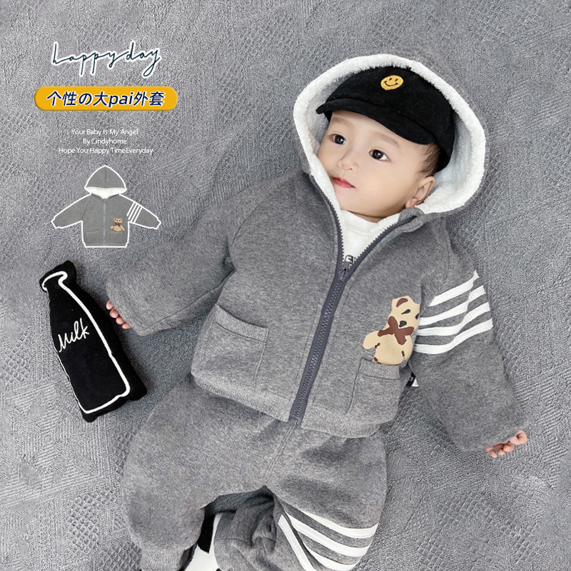 겨울 기모 두꺼운 신생아 유아 면 따뜻한 재킷 2 종 세트 남자와 여자의 아기 인터넷 연예인 유행 옷스토어 가기