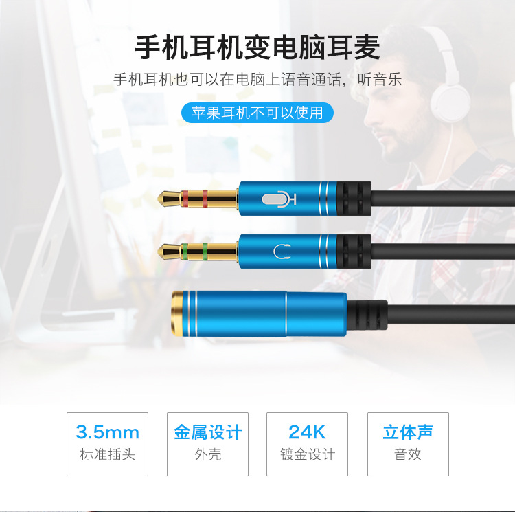 3.5 오디오 어댑터 1-2 어댑터 어댑터 데스크탑 컴퓨터 헤드셋 오디오 케이블 2-in -1