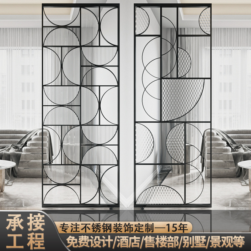 현대 미니멀리스트 거실 입구 복도 전기 도금 스테인레스 스틸 테두리 슈퍼 화이트 창홍 유리 스크린 파티션
