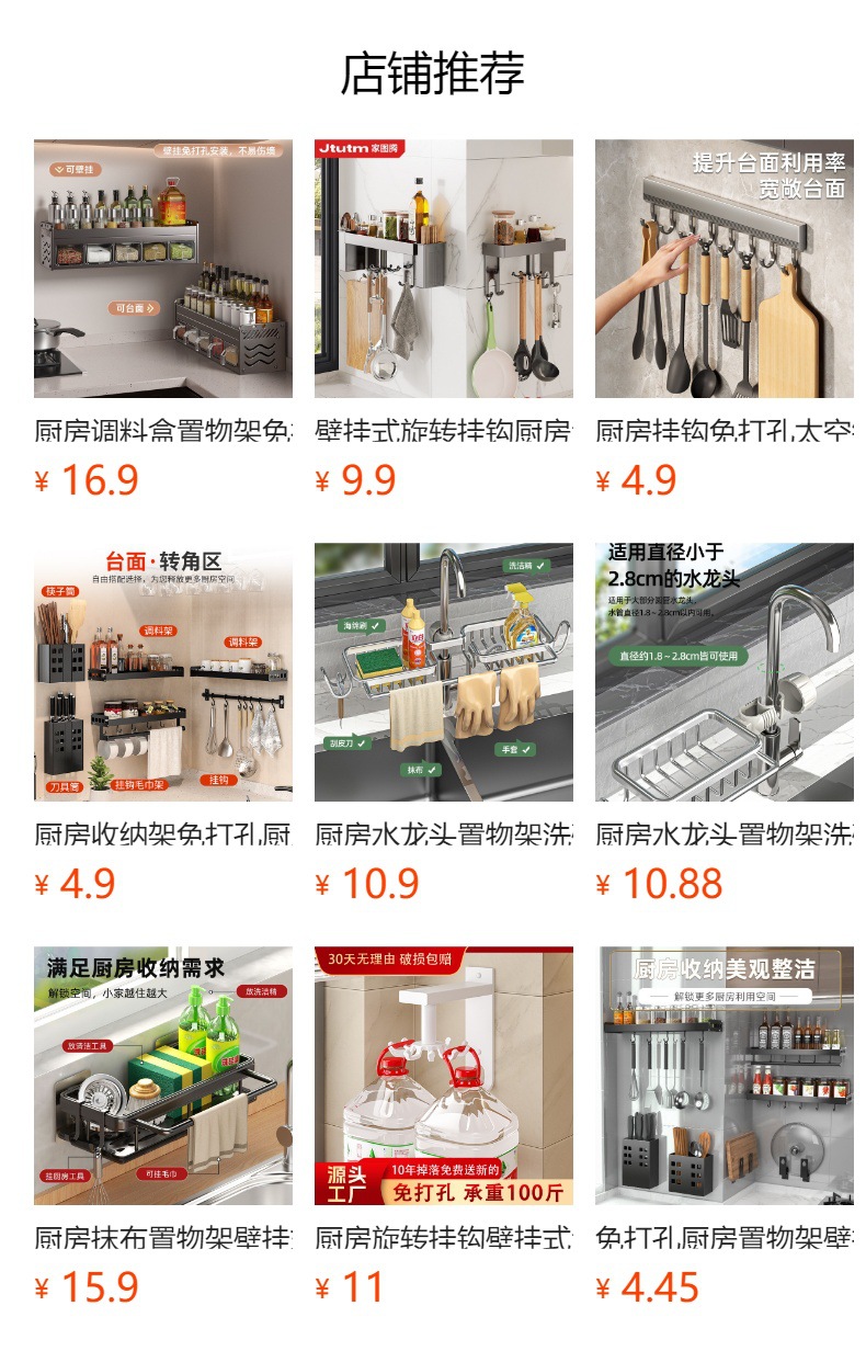 구멍없는 주방 보관함 다기능 공간 알루미늄 가정용 벽걸이 형 젓가락과 칼 홀더 용품 보관함스토어 가기