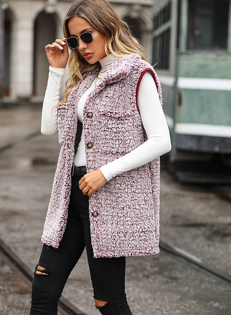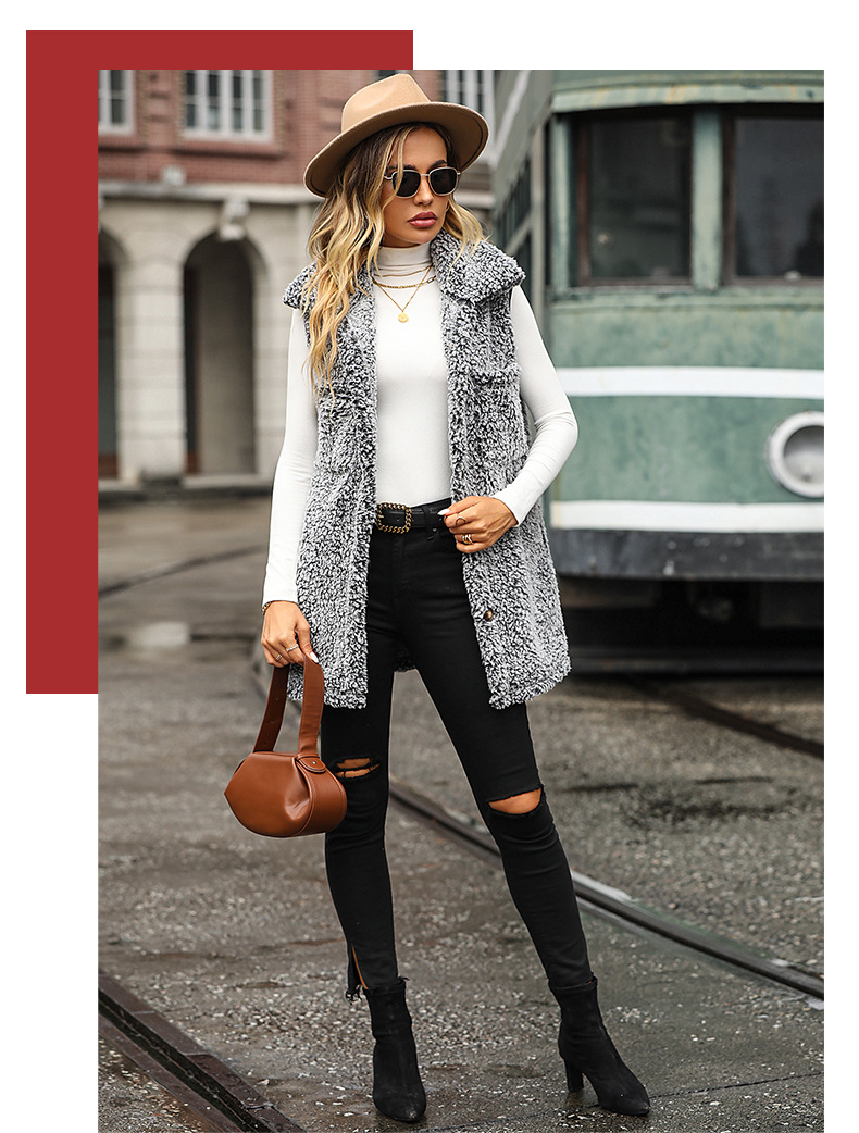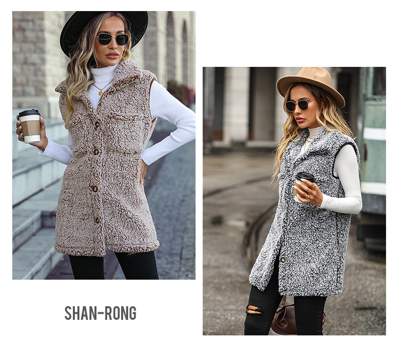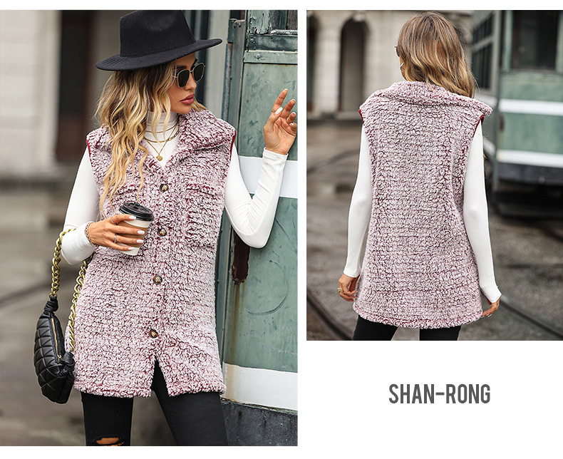 플래시 벨벳 크로스 보더 유럽과 미국 여성의 가을과 겨울 옷깃 민소매 긴 느슨한 캐주얼 퇴색 버블 벨벳 카디건 조끼
