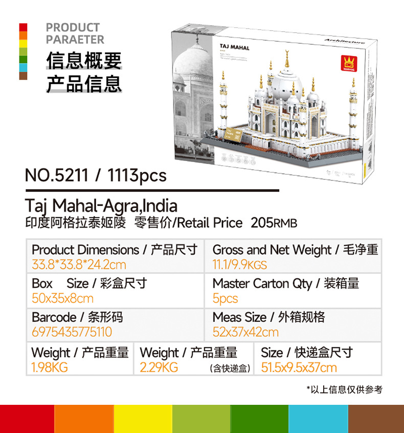 Wanger New India Taj Mahal 국내 작은 입자 빌딩 블록 호환 어린이 조립 건물 블록 장난감 5211스토어 가기