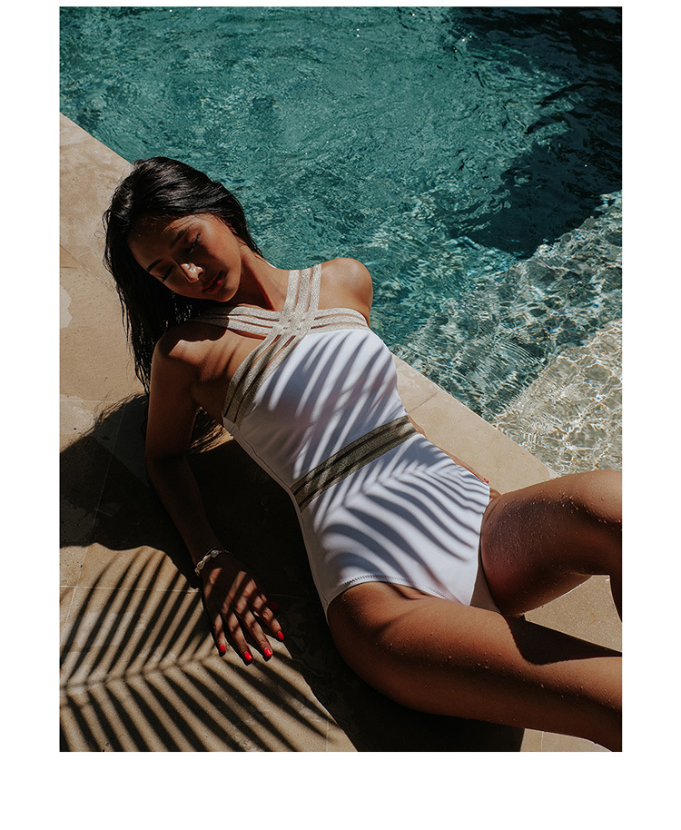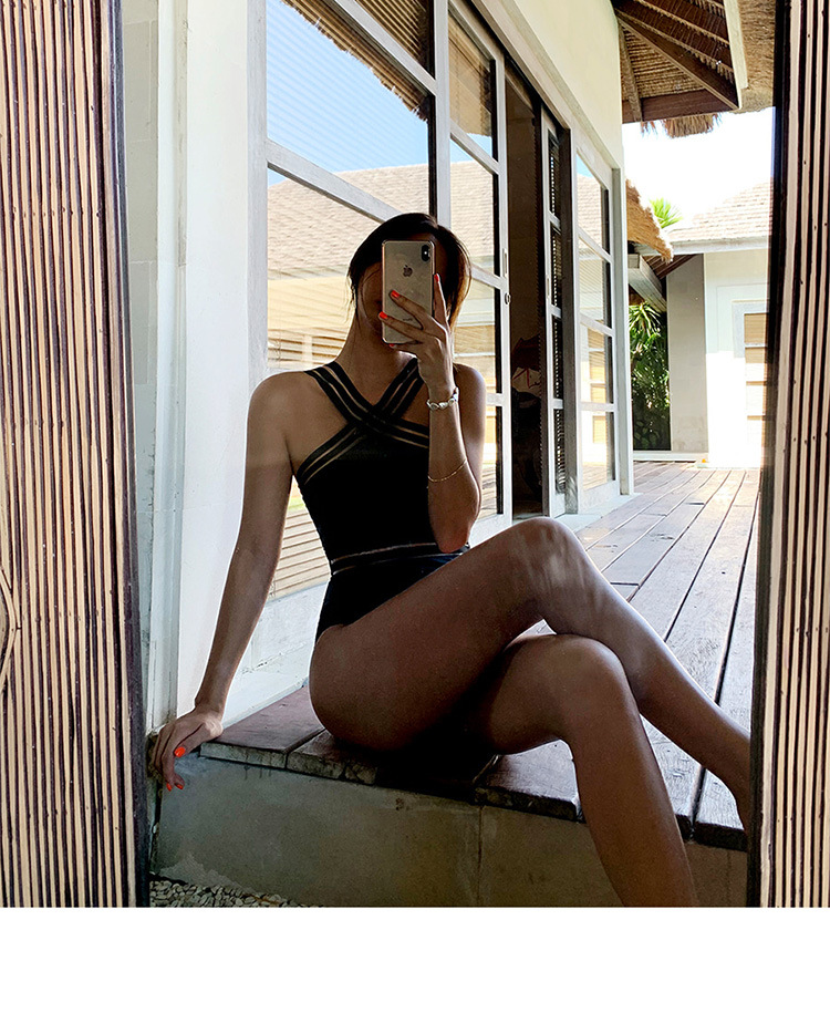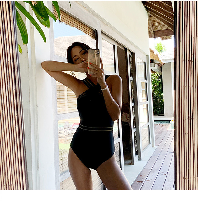 한국 새로운 관점 섹시 백 벨트 슬림핏 슬림핏 원피스 수영복 여성용 크로스 숄더 노출 수영복
