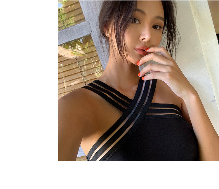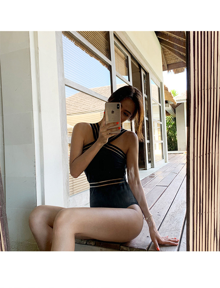 한국 새로운 관점 섹시 백 벨트 슬림핏 슬림핏 원피스 수영복 여성용 크로스 숄더 노출 수영복스토어 가기