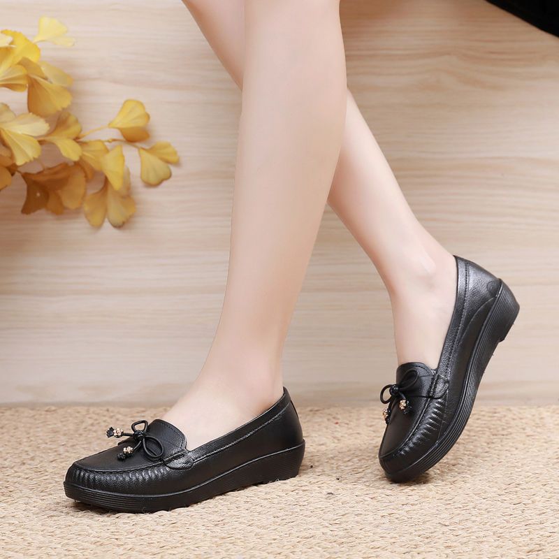 새로운 원피스 신발 벨크로 웨지 엄마 신발 여성용 로우 탑 얕은 입 비즈니스 캐주얼 고무 신발