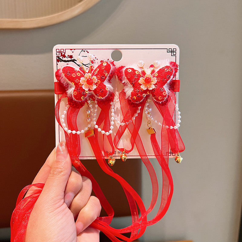 중국 새해 모자 어린이 새해 헤어 액세서리 여아 가발 활 새해 인사 머리핀 아기 축제 머리핀