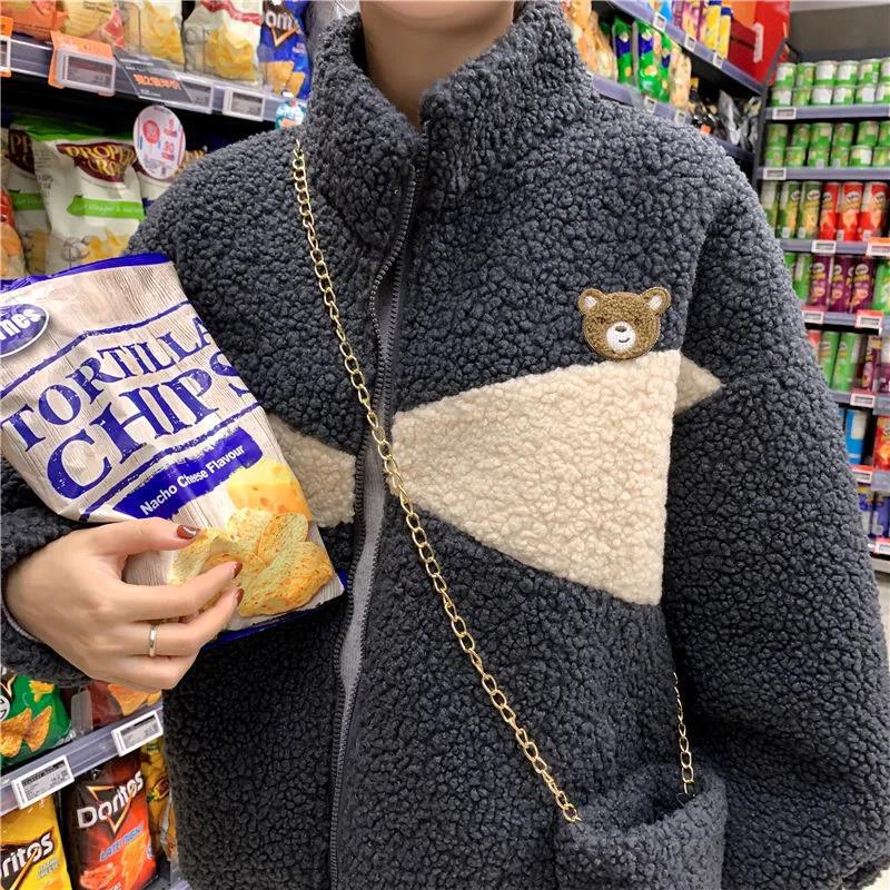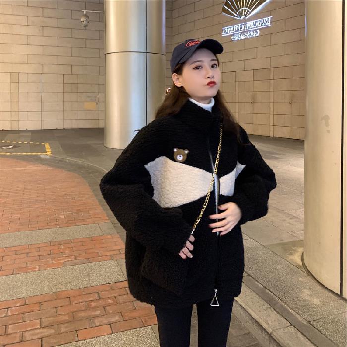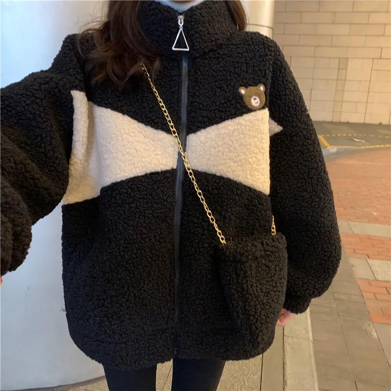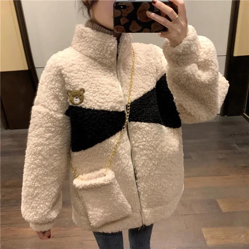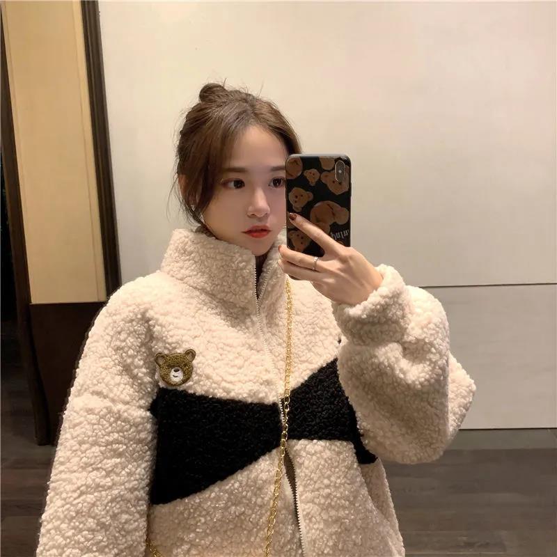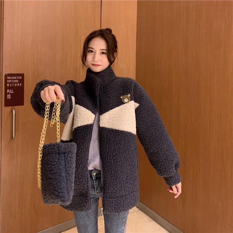겨울 2023 한국 스타일 플러스 사이즈 느슨한 학생 기모 모조 양고기 양털 재킷 코트 모조 양고기 모직 코트 여성의 트렌디스토어 가기