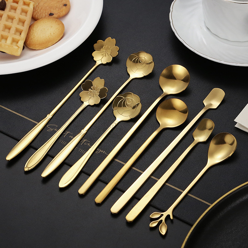 스테인레스 스틸 벚꽃 스푼 다양한 믹싱 스푼 잎 스푼 황금 작은 둥근 스푼 짧은 손잡이 커피 스푼 긴 손잡이 머그 스푼