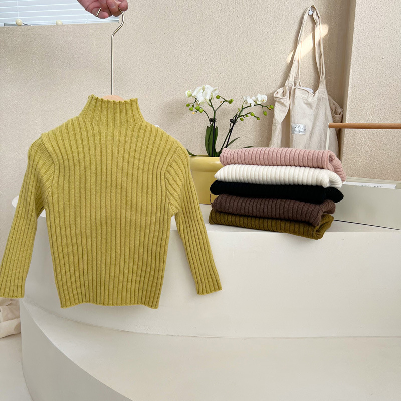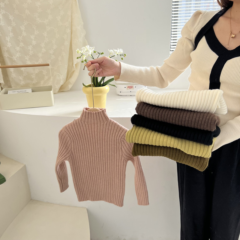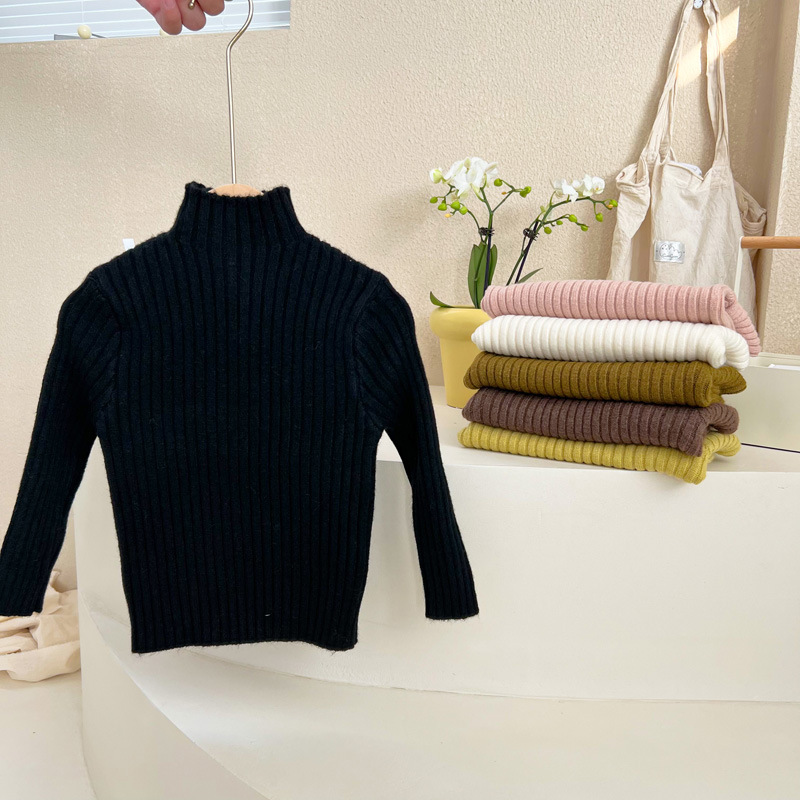 한국 2023 가을과 겨울 새로운 아동 의류 아동 터틀넥 스웨터 부드러운 울베이스 셔츠 소년과 소녀 탑스토어 가기