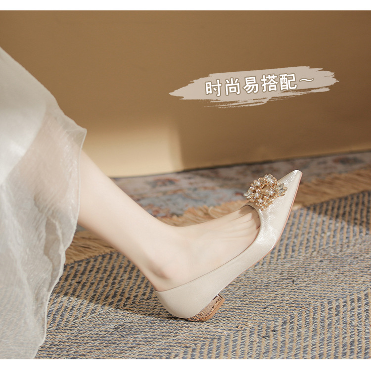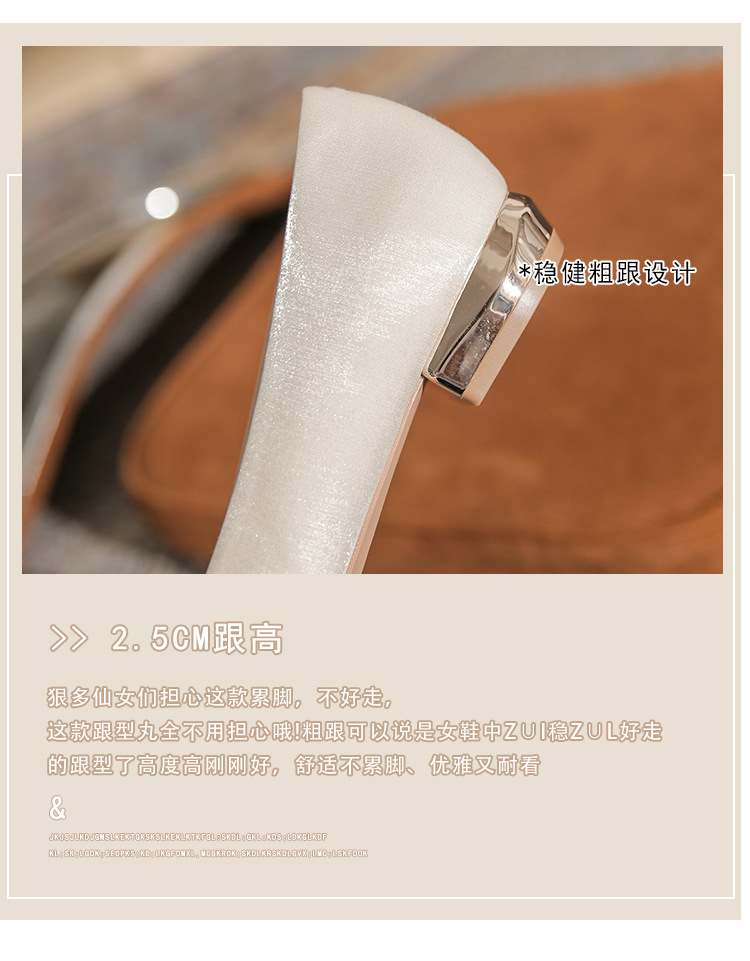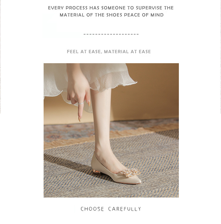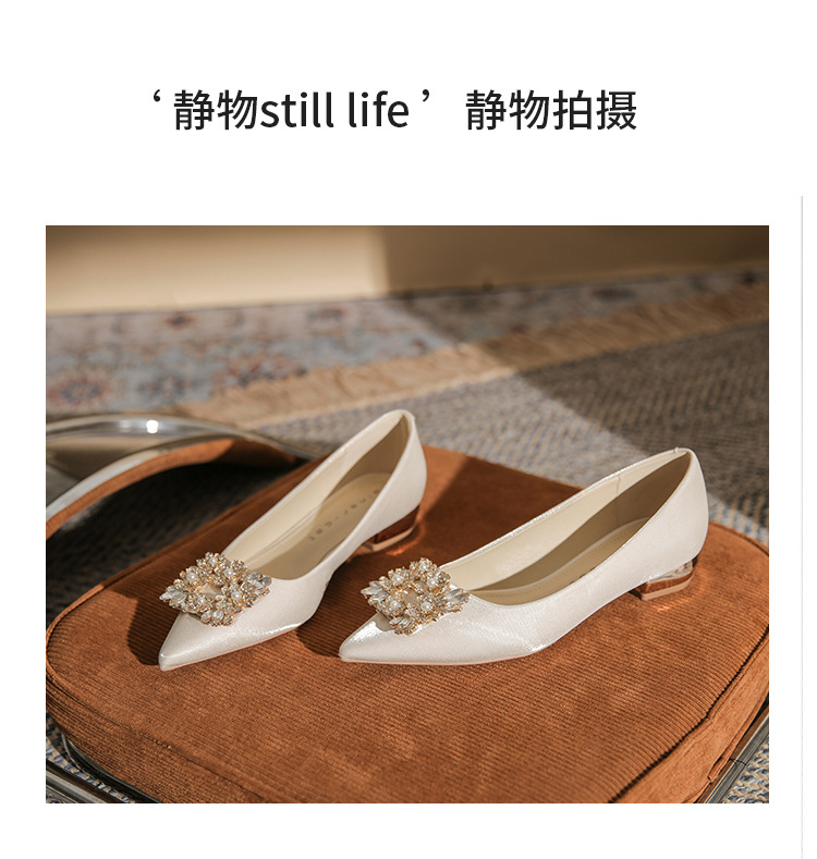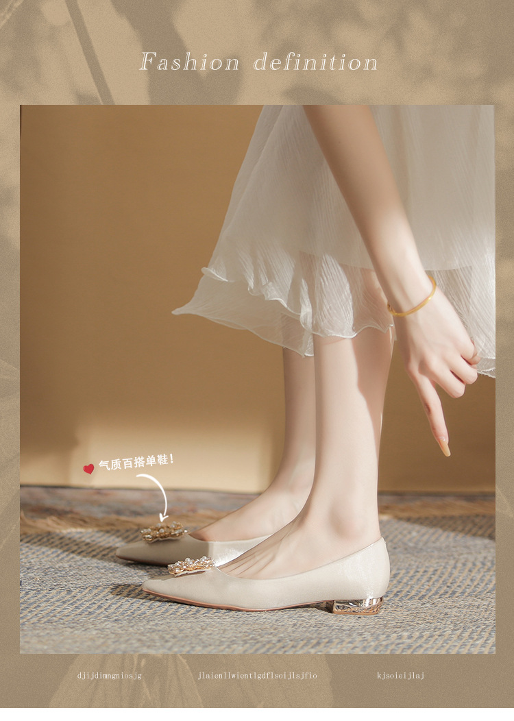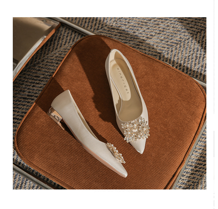 211-9 여성용 플랫 웨딩 슈즈 2026년 신상품 발이 피곤하지 않은 두꺼운 굽 신부 슈즈 사각 버클 크리스탈 로우힐 슈즈스토어 가기