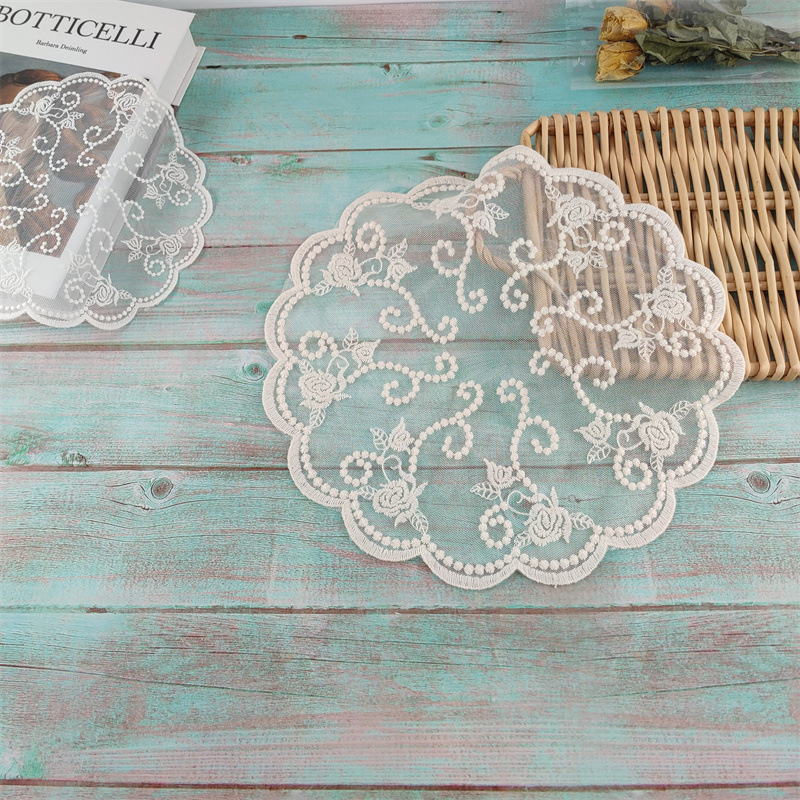 레트로 그레이스 꽃병 매트 수 놓은 원형 테이블 매트 테이블 매트 코스터 방진 커버 타월 사진 소품