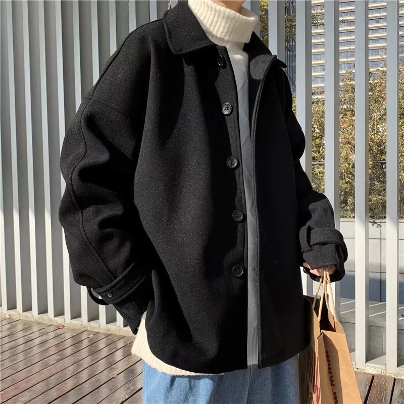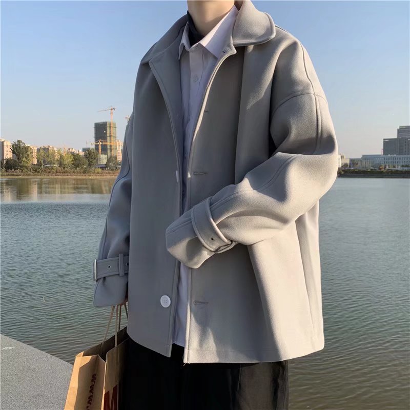 모직 코트 남성 2021 가을 겨울 새로운 쇼트 코트 한국 유행 모든 경기 잘 생긴 모직 코트스토어 가기