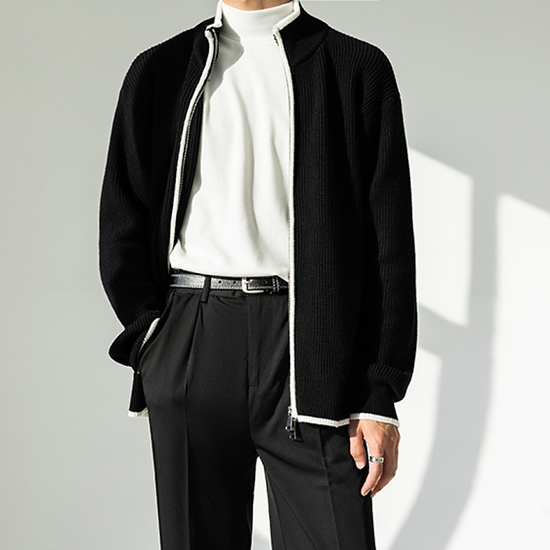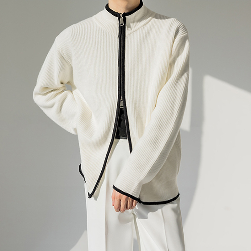가디건 스웨터 남성용 2022 봄 가을 새로운 패션 남성용 심플 더블 지퍼 니트웨어 캐주얼 남성 코트스토어 가기