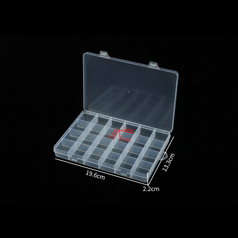 24 그리드 커버 플라스틱 낚시 기어 후크 포장 상자 투명 PP 보석 끈 보석 모조 다이아몬드 저장 상자 투명 도매스토어 가기