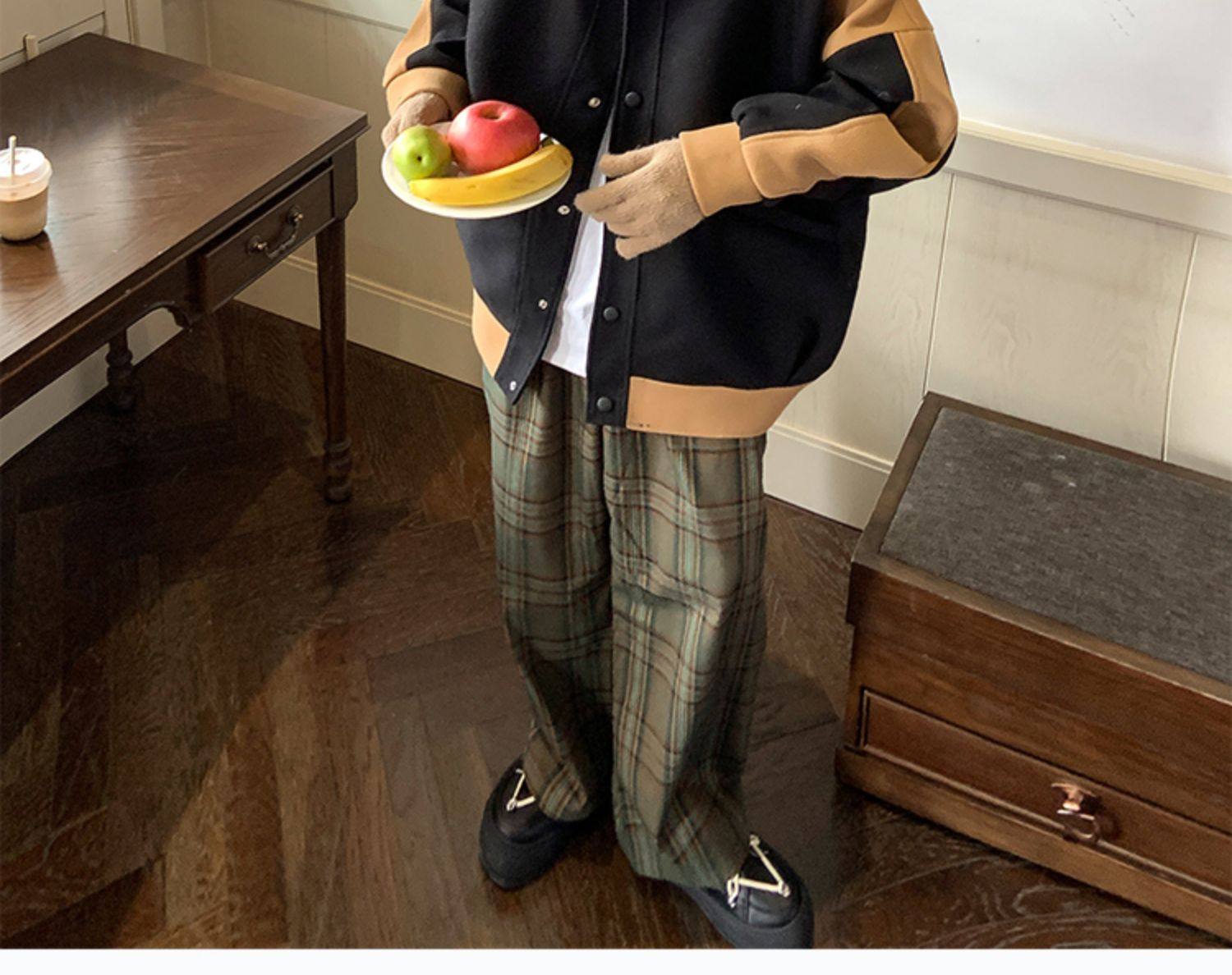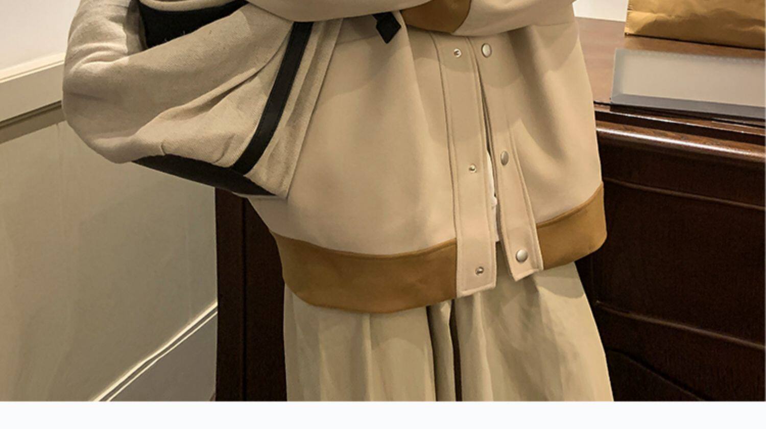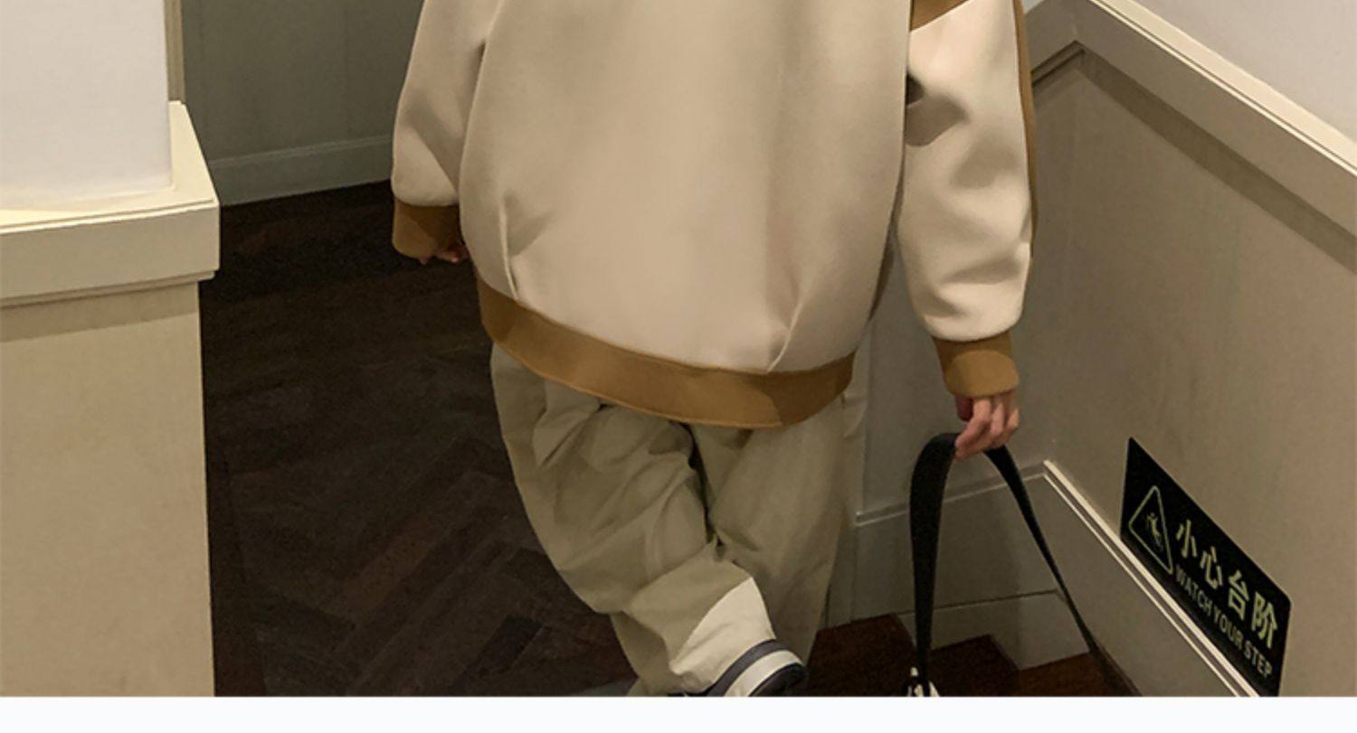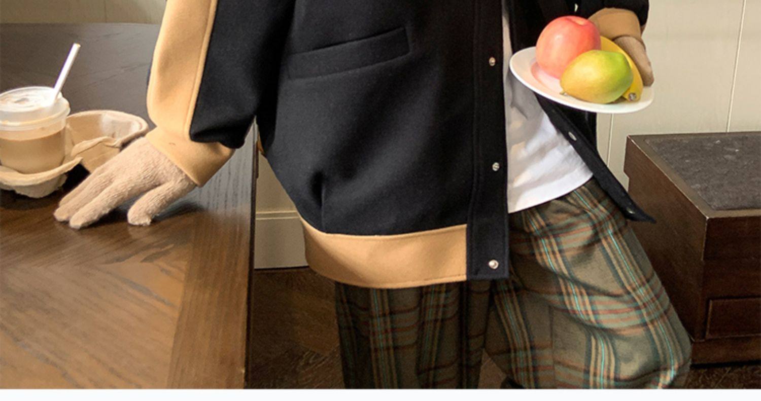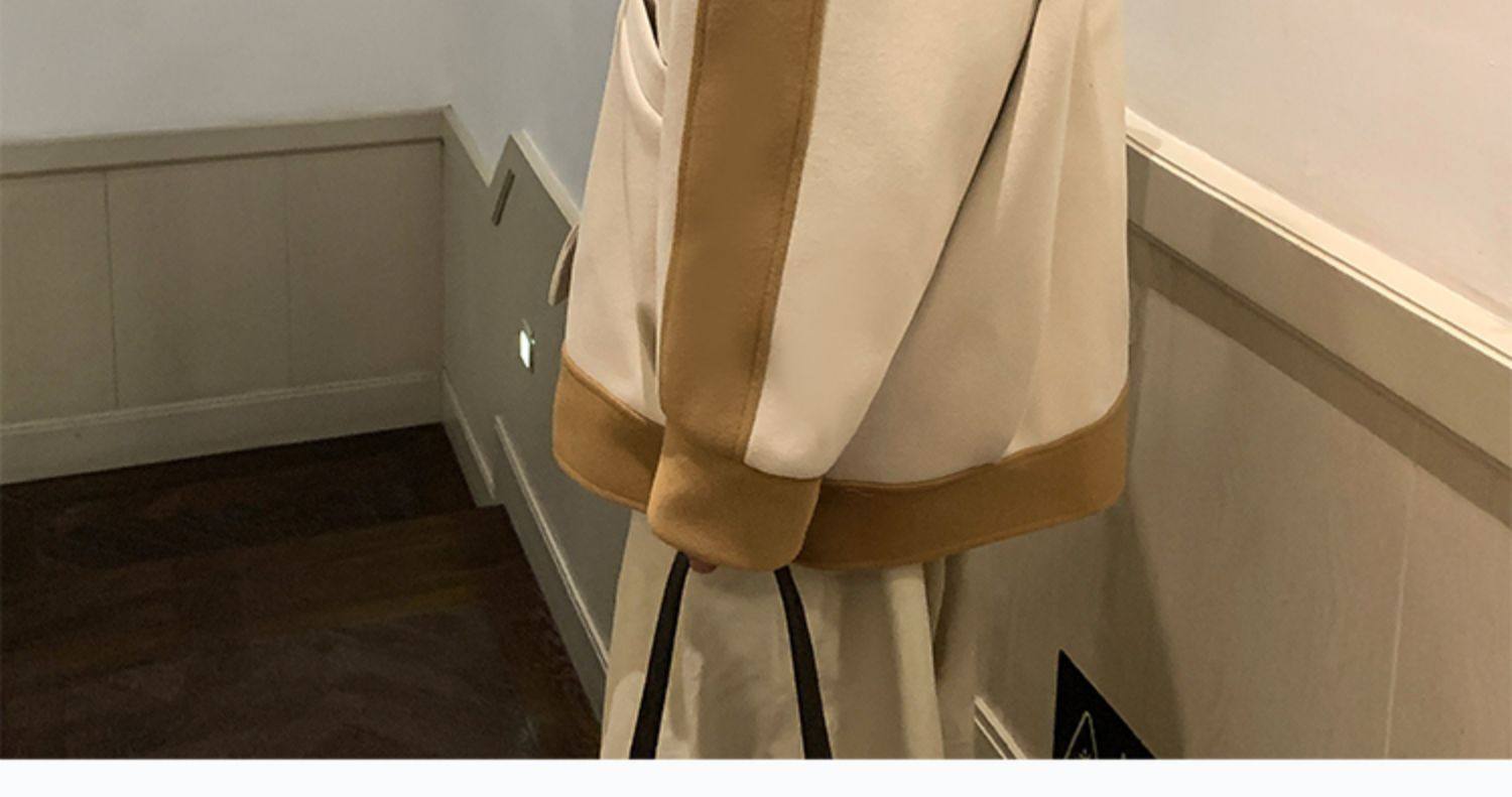 潮牌拼色毛呢外套男oversize美式高街个性上衣vibe流行帅气夹克男
