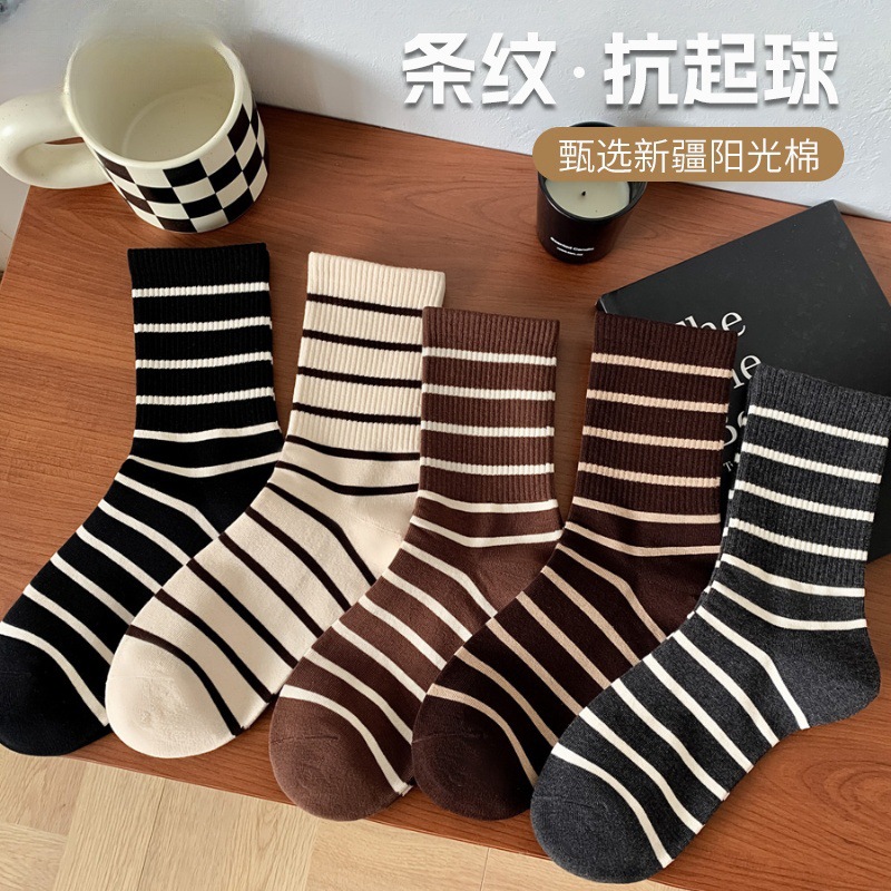 • 여성용 더블 원사 스트라이프 미드 튜브 양말