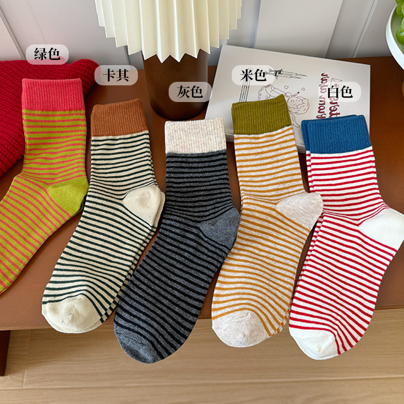 • 여성용 다채로운 가로 줄무늬 미드 튜브 양말