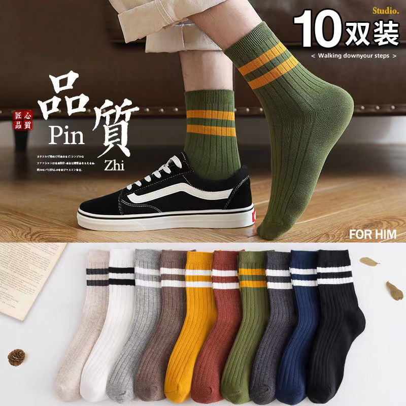 남성용 양말 면양말 검정색 중간 길이 양말 한국 스타일 가을 겨울 사계절 양말 땀 흡수 비즈니스 스포츠 양말 면양말