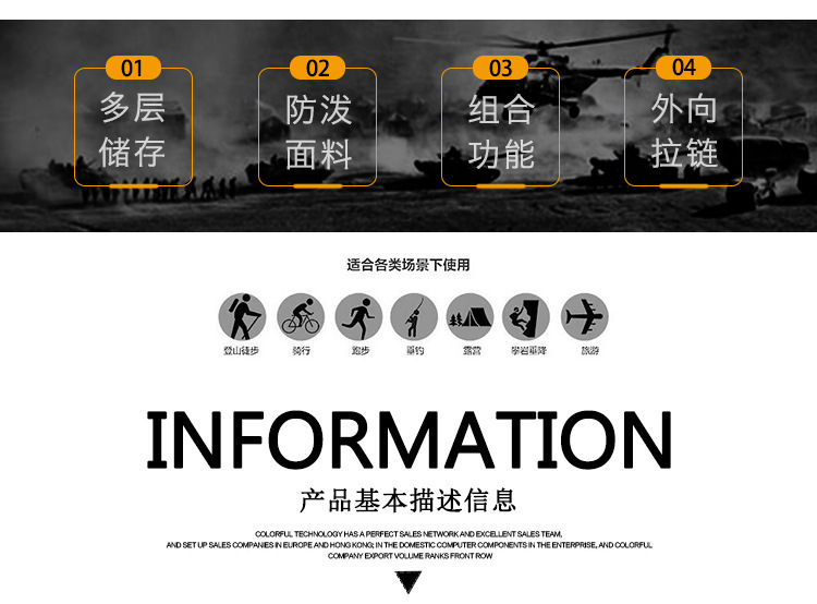 现货颜色:黑色,军绿,卡其,丛林数码,ACU,CP,暗夜迷彩。