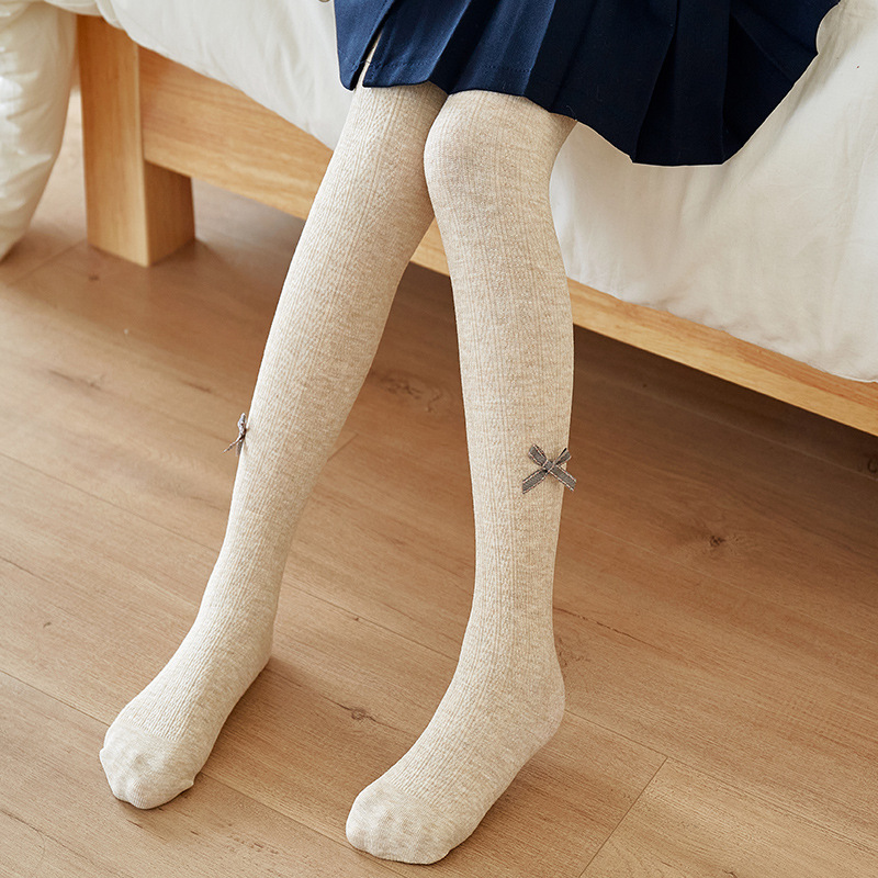 새로운 가을과 겨울 기모 두꺼운 어린이 팬티 스타킹 빗질 코튼 니트 트위스트 보우 여아 브러시 레깅스