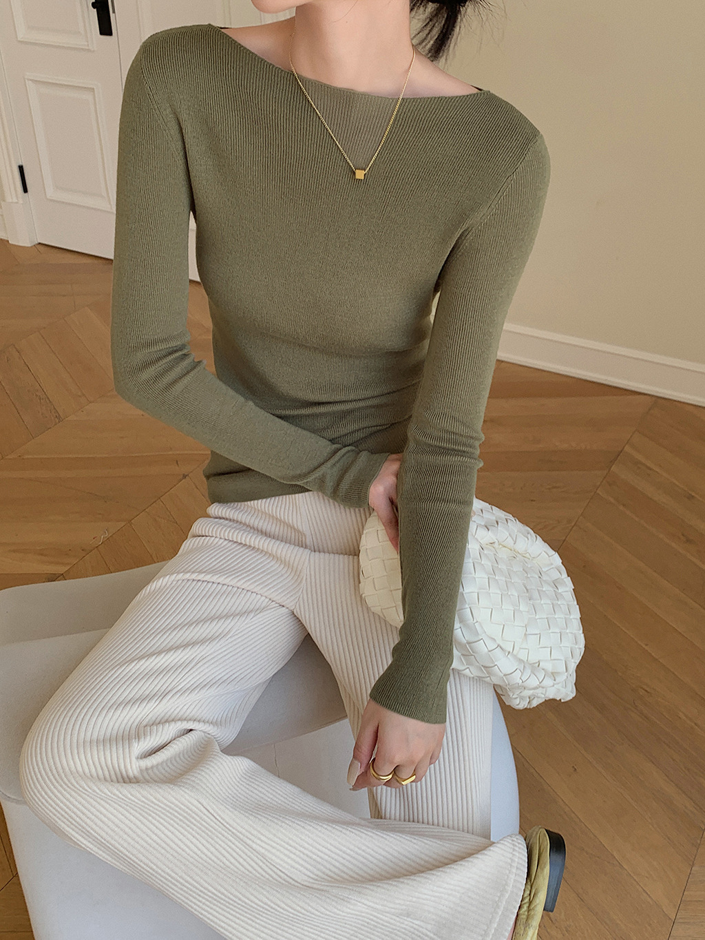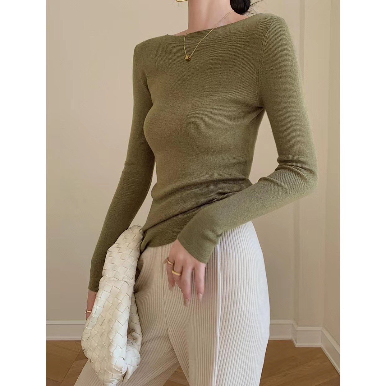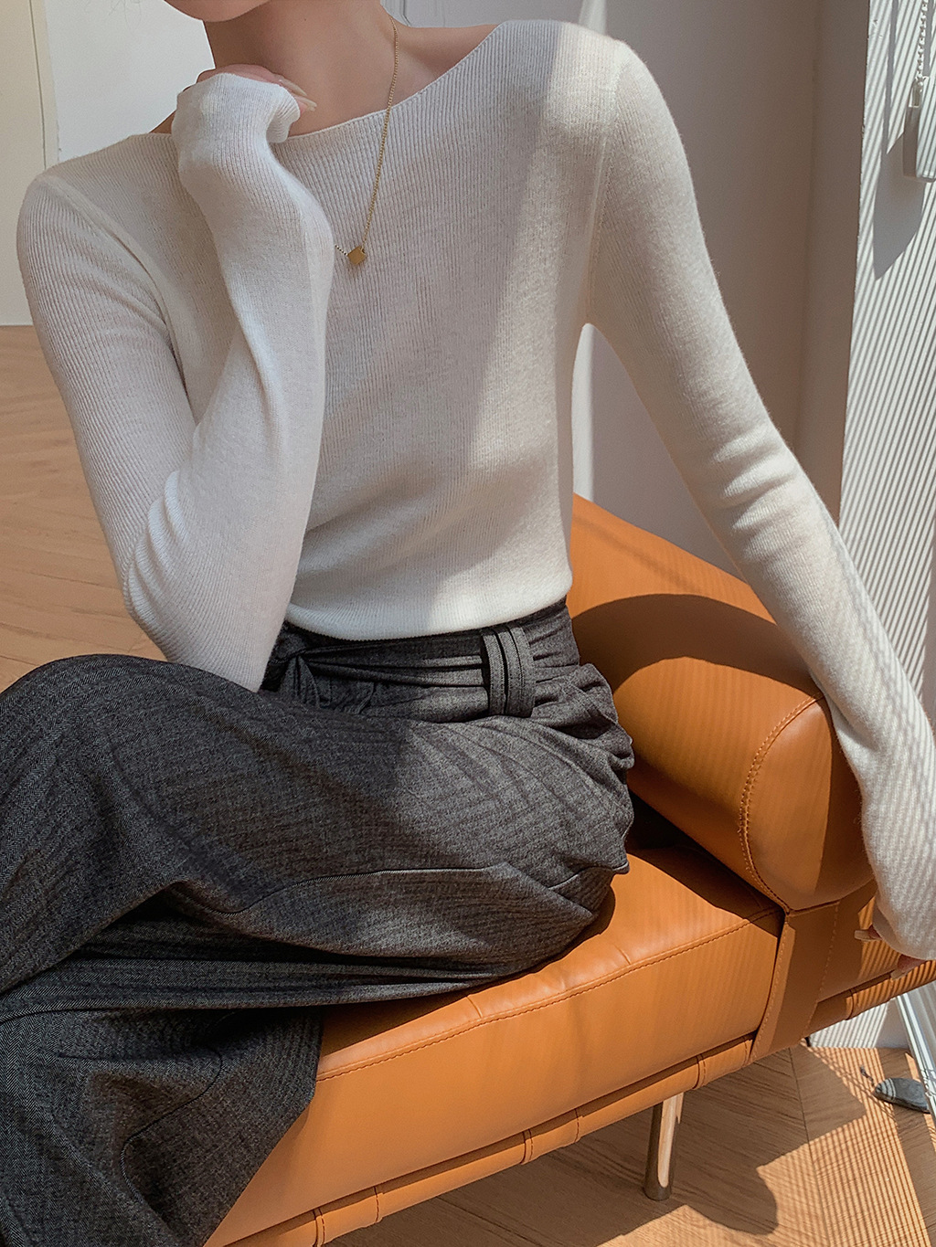 가을과 겨울 새로운 오프 숄더 울 니트 베이스 셔츠 여성용 타이트 이너베이스 스웨터 고급 우아한 탑스토어 가기