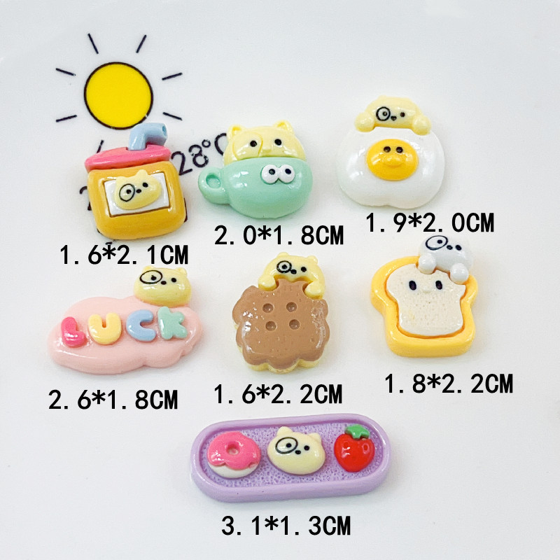 밝은 국수 음식 토스트 밀크 티 치즈 플레이트 외눈 고양이 헤어 로프 머리핀 잡아 헤어 로프 전화 케이스 DIY 액세서리스토어 가기