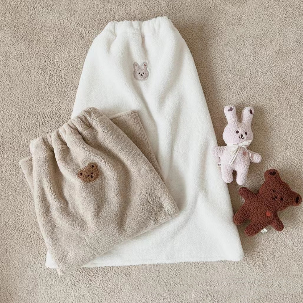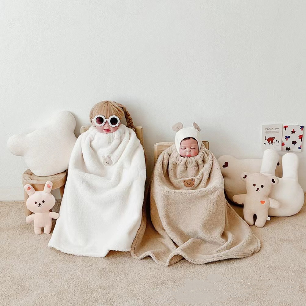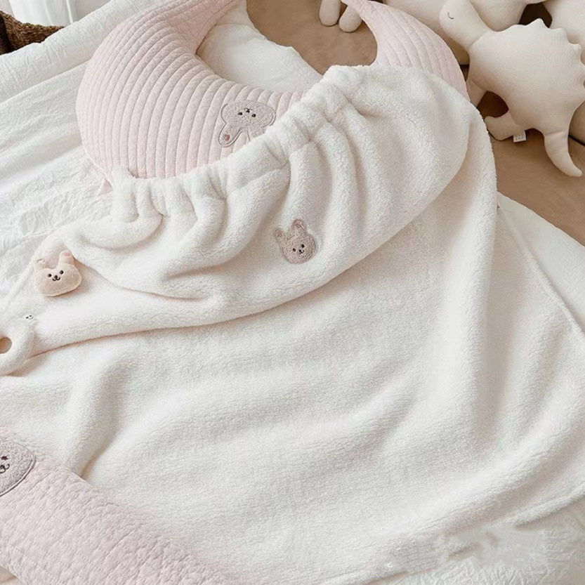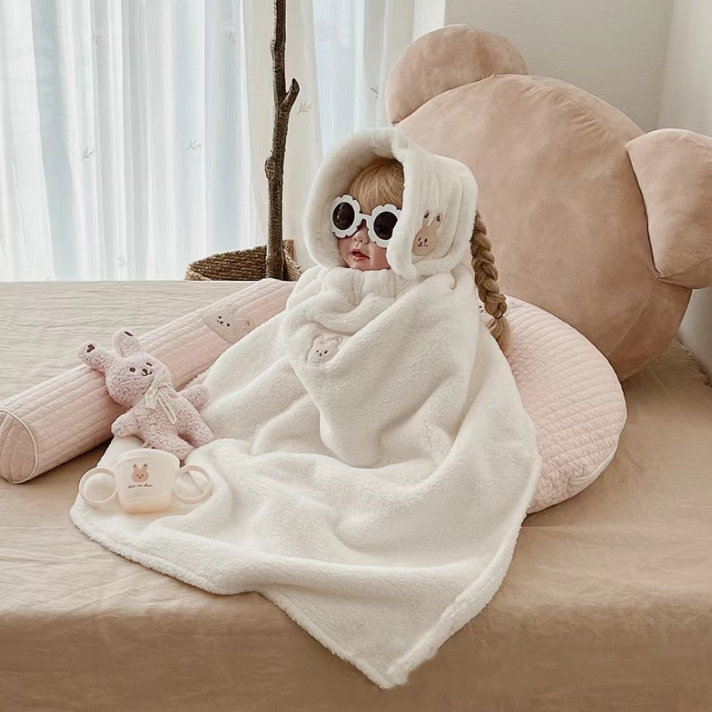 • 쌀 흰 토끼 자수 봉제 담요 망토