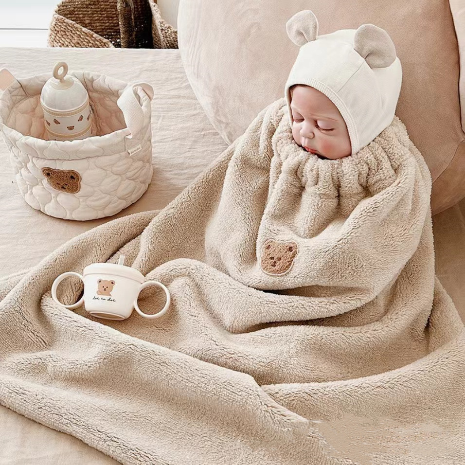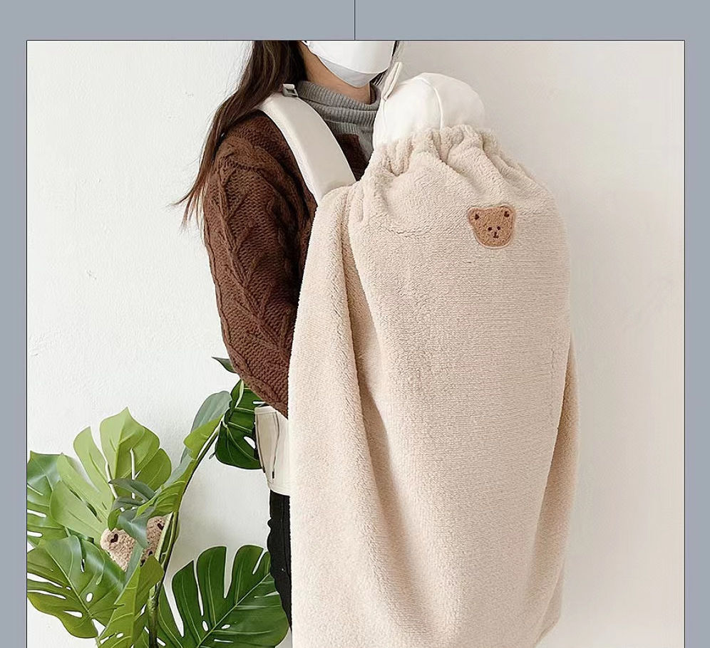 • 카키 머리 자수 봉제 담요 망토