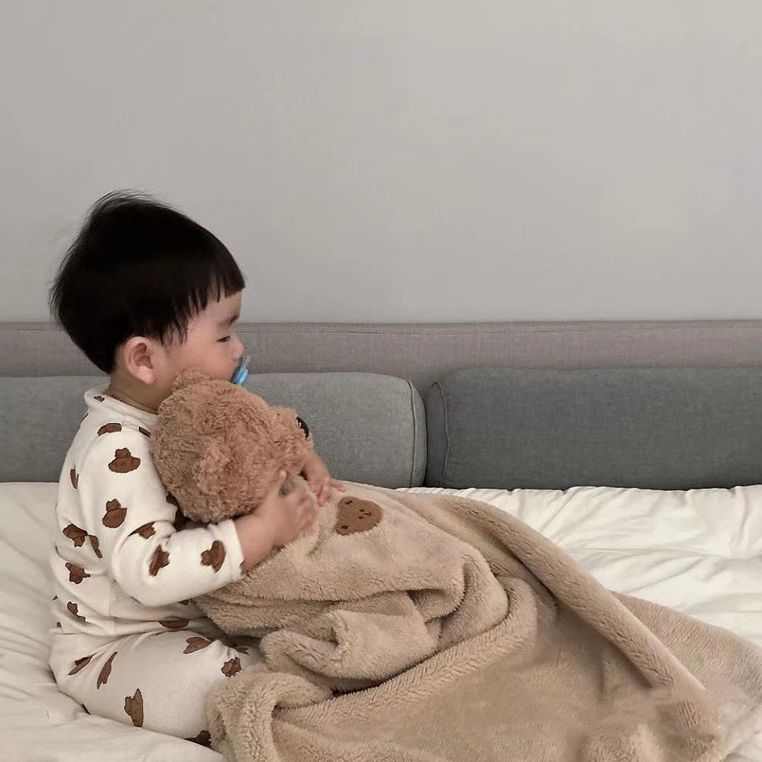 가을과 겨울의 어린이와 어린이를위한 INS 봉제 만화 자수 담요스토어 가기