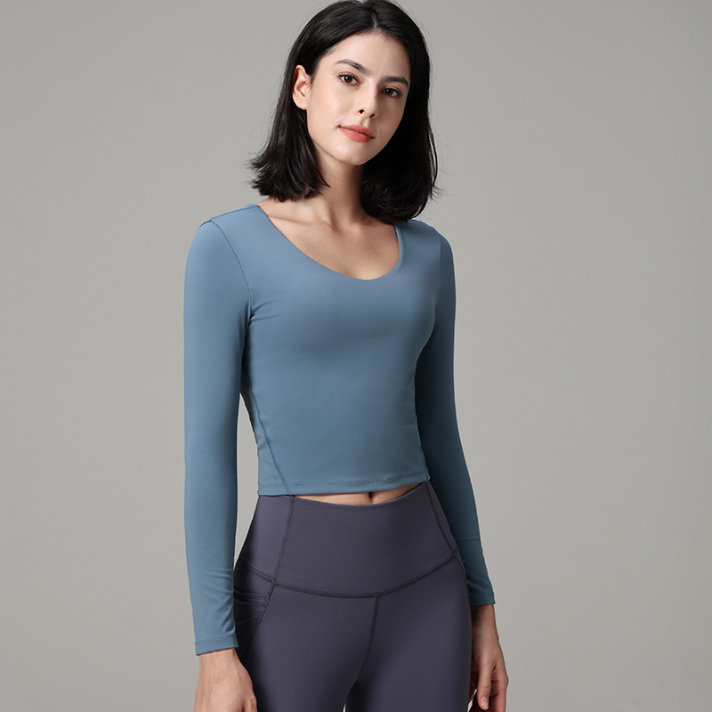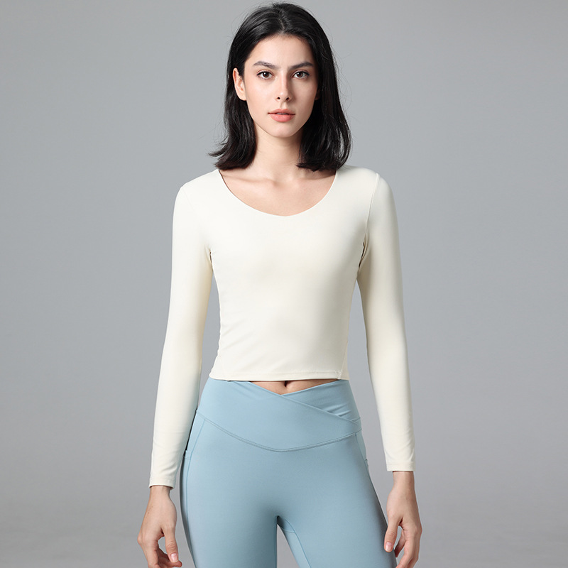 슬림핏 요가복 스포츠 상의 가을 신상 긴팔 가슴 패드 내장 티셔츠 유럽 및 미국 스타일 야외 피트니스복 요가 여성용