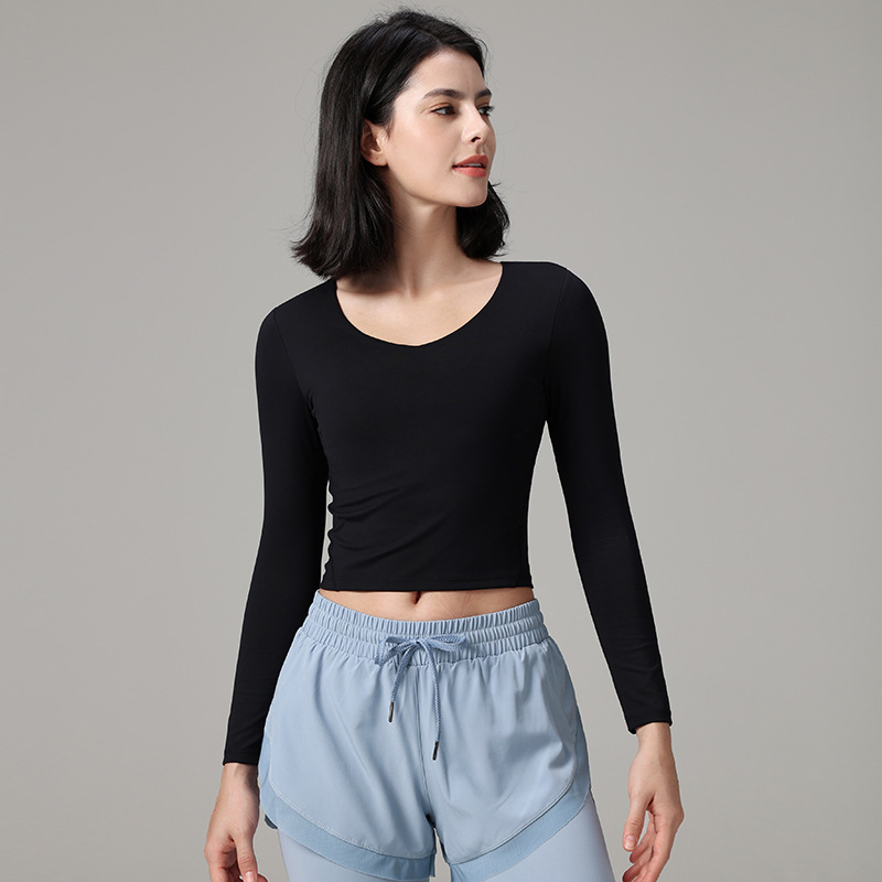 슬림핏 요가복 스포츠 상의 가을 신상 긴팔 가슴 패드 내장 티셔츠 유럽 및 미국 스타일 야외 피트니스복 요가 여성용스토어 가기