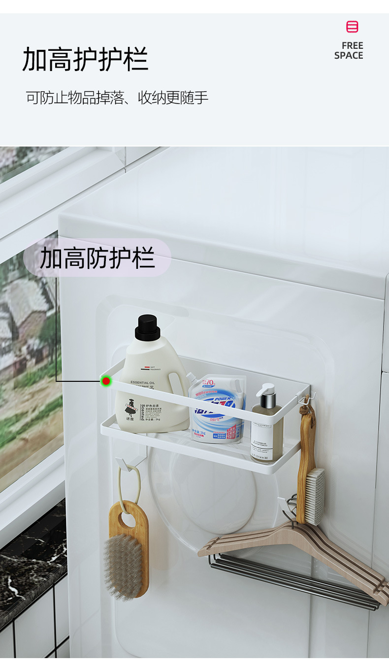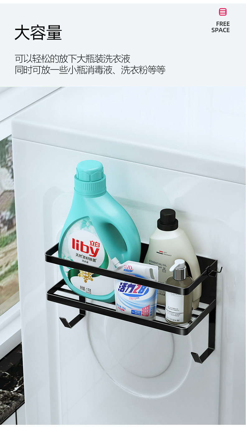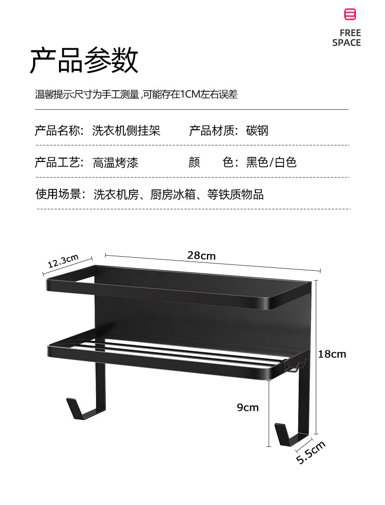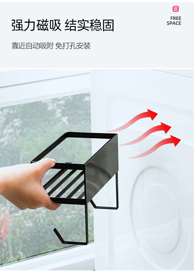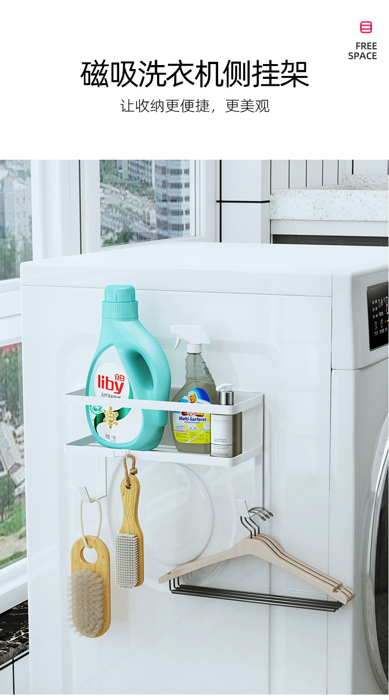 일본식 세탁기 측면 자석식 수납 선반 세탁 세제 세탁 파우더 옷걸이 배수관 수납 선반 자석식 디자인