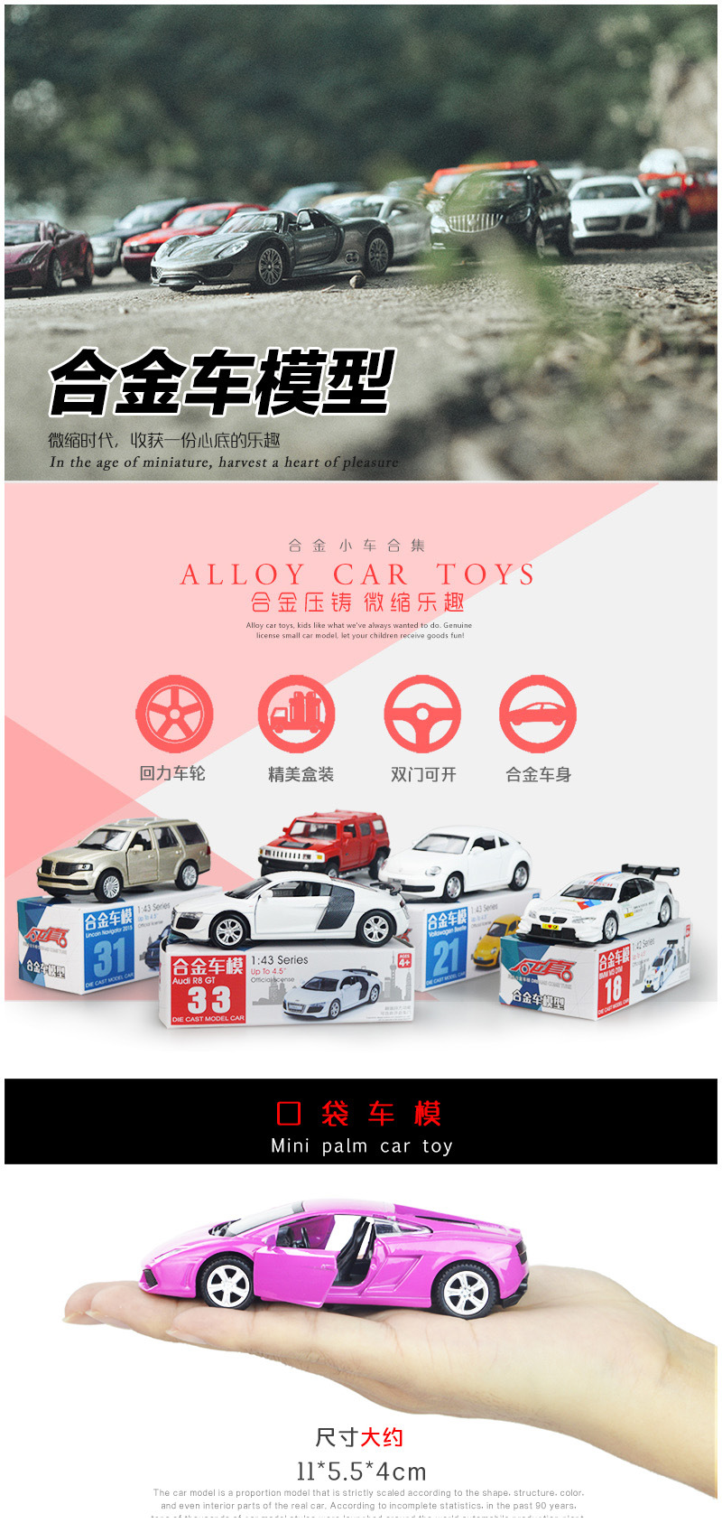 컬러 포 1:43 합금 자동차 모델 시뮬레이션 미니 포켓 오픈 도어 자동차 소년 장난감 자동차 컬렉션 장식품