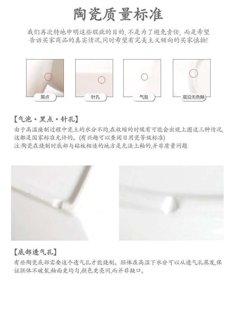 陶瓷类产品包装成本高,包装需要的时间等人工成本,物料成本均高于其他产品,故产品已经发出,不得无故拒收,因为陶瓷是易碎品,我们会尽最大努力包装好,但是也无法避免因为快递暴力导致的破损,如果有破损,小量破损也需要先签收,后联系客服补发或者退破损的款,如大量破损,如一定需要拒签,需要拍好照片,面单照片,破损照片等,否则任何拒收都需要承担货物的来回运费。下单付款即代表同意以上信息,如不能接受,请不要下单或者联系客服协商。