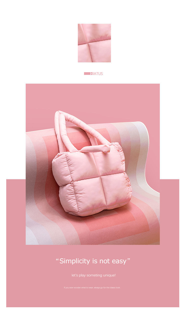 유럽과 미국의 틈새 디자인 다이아몬드 스퀘어 토트 백 퍼프 부드러운 면 베개 가방 어깨 겨드랑이 가방