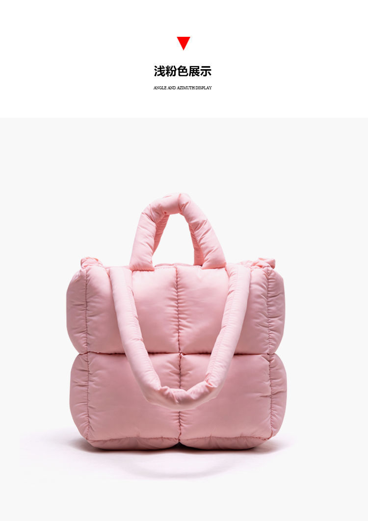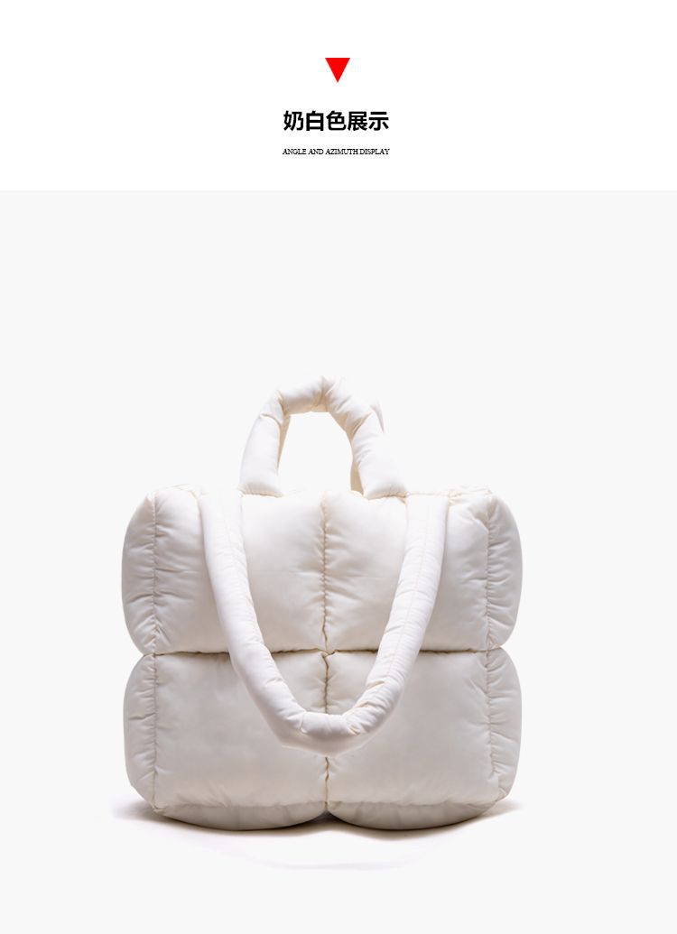 유럽과 미국의 틈새 디자인 다이아몬드 스퀘어 토트 백 퍼프 부드러운 면 베개 가방 어깨 겨드랑이 가방스토어 가기