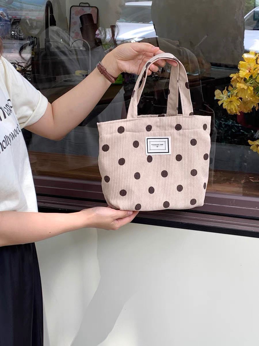 2022 New 코듀로이 레트로 웨이브 도트 핸드백 일본 캐주얼 통근 토트 백 여성 도시락 가방스토어 가기